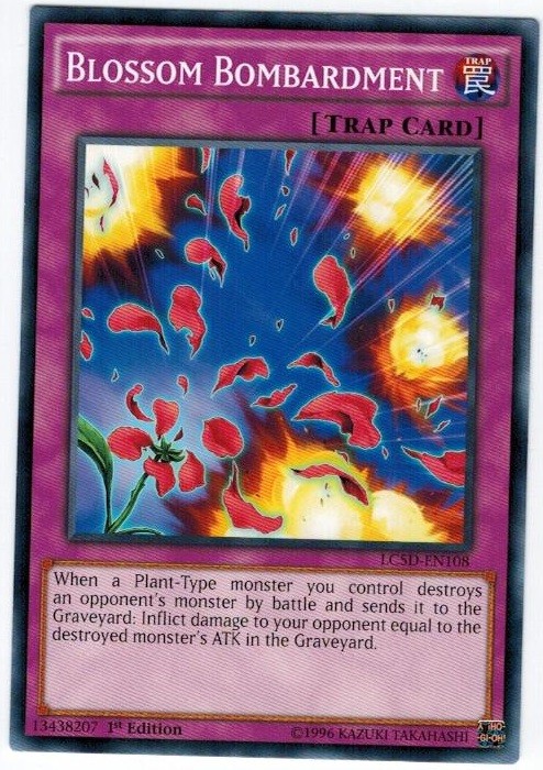 PICTURE IN LISTING IS ONLY FOR EXAMPLE ,it is a stock picture. Item condition is listed as "Used" because Ebay requires UPC codes for any item that is listed as "New", and trading cards do not have UPC Codes, so they must be listed as "Used". Card condition is listed in the listing title and in the item description. Rarity and edition of the card are described in the listing title and description. From this listing you will receive 1 card(s) for each purchase Description Set : Legendary Collection 5D's Name : Blossom Bombardment Number : LC5D-EN108 Rarity : Common Condition : Near Mint Language : English We get your package in the mail quickly, please rate our service based on how quickly we gave your package to the post office. Not on how long it took the post office to deliver it. As we all know we cannot control that. If you have concerns about our shipping service, please send us a message and we will gladly talk to you about it and explain it. Domestic Buyers: Domestic orders within the United States are shipped for one flat rate, no cost for additional cards purchased on the same invoice. International Buyers: International orders are shipped First Class Mail International with and an additional item fee of $0.50. Orders over $50.00 USD require additional postage fees because of shipping method changes. SPECIAL REQUIREMENTS For International Orders Any International order greater than $100.00 USD will require shipment by : USPS Global Express Mail This is a flat rate service and you may ship cards totaling up to 16 ounces, the weight limit on the package. The following International Countries can request USPS First Class Mail International Package as the shipment method for orders over $50.00 USD as this service provides electronic tracking to these countries. This service is more expensive than the normal USPS First Class Mail International service, but cheaper than USPS Priority Mail International. Australia Gibraltar Netherlands Belgium Great Britain New Zealand Canada Hungary Northern Ireland Croatia Israel Portugal Denmark Latvia Singapore Estonia Lithuania Spain Finland Luxembourg Switzerland France Malaysia Germany Malta Special Handling of International orders : We reserve the right to hold and/or cancel any International order in which it appears the buyer is attempting to circumvent our Global Express shipping requirements by breaking up larger purchases into smaller orders. Orders made within a 30 day window and having previous orders that have not yet been acknowledged as received, via Feedback and Ebay messages will be subject to this condition and may be held until all previous orders have been acknowledged as received. International Buyers – Please Note: Import duties, taxes and charges are not included in the item price or shipping charges. These charges are the buyer's responsibility. Please check with your country's customs office to determine what these additional costs will be prior to bidding/buying. SHIPPING: Every attempt is made to send your item out within 1 business day of receipt of payment. Check our feedback! Pre-sell items are shipped within 1 business day of us getting merchandise in hand. Default Shipping Methods: Domestic Orders: Shipped First Class Mail Cards will be shipped with a Hard Sleeve and/or a Soft Sleeve for protection in accordance with eBay's standard envelope policy. International Orders: Shipped First Class Mail International Cards will be shipped with a Hard Sleeve and/or a Soft Sleeve for protection in accordance with eBay's standard envelope policy. We use all new and clean products to package your cards. If you have any questions, please do not hesitate to ask!