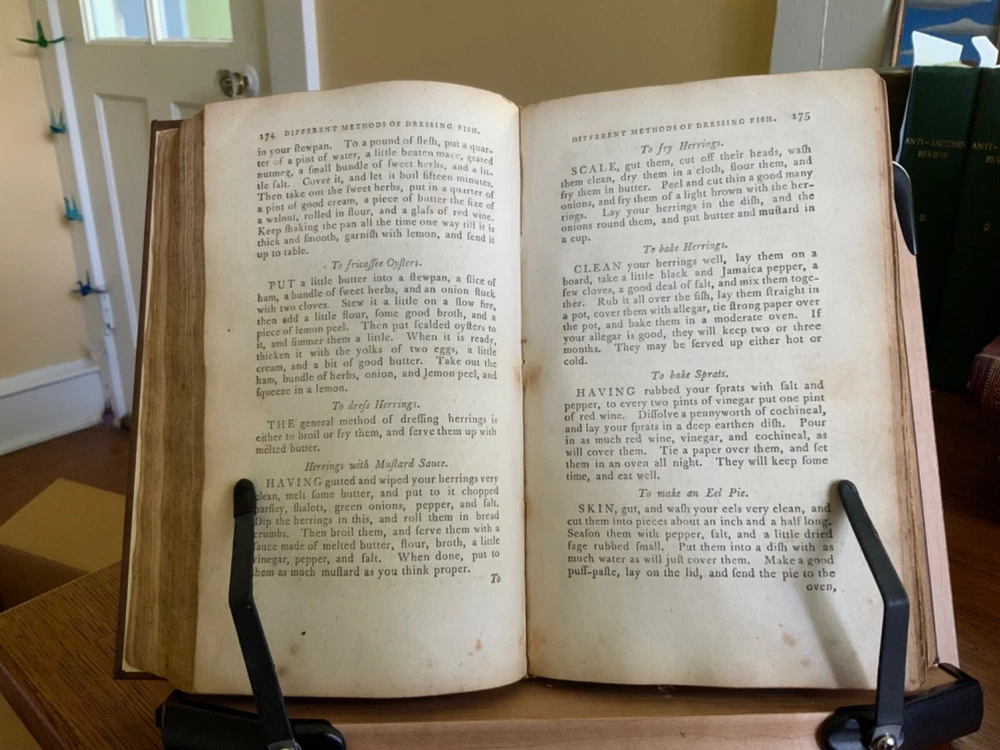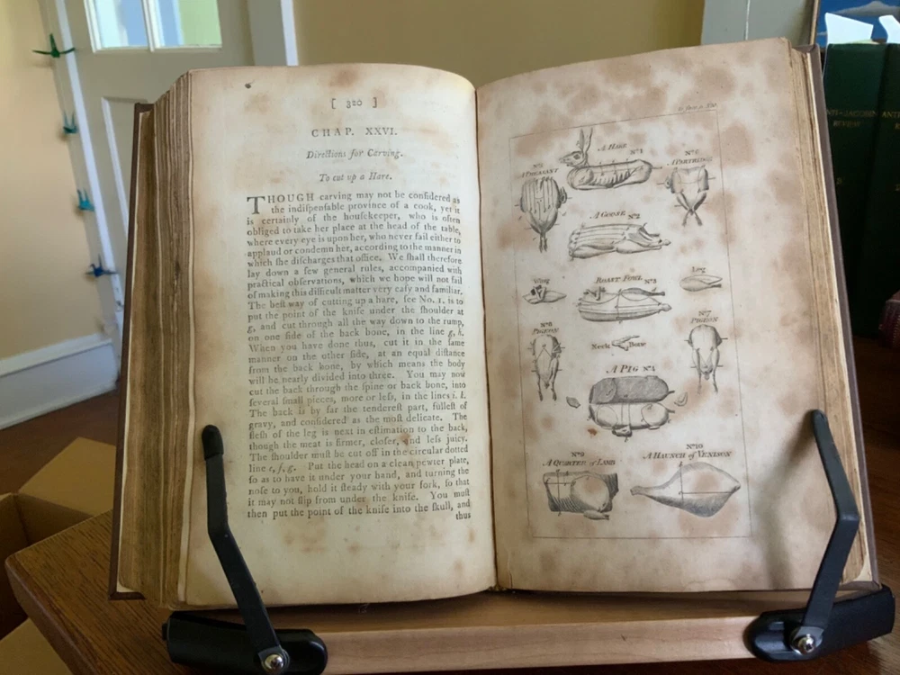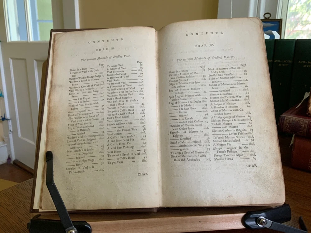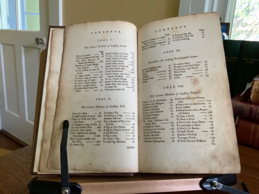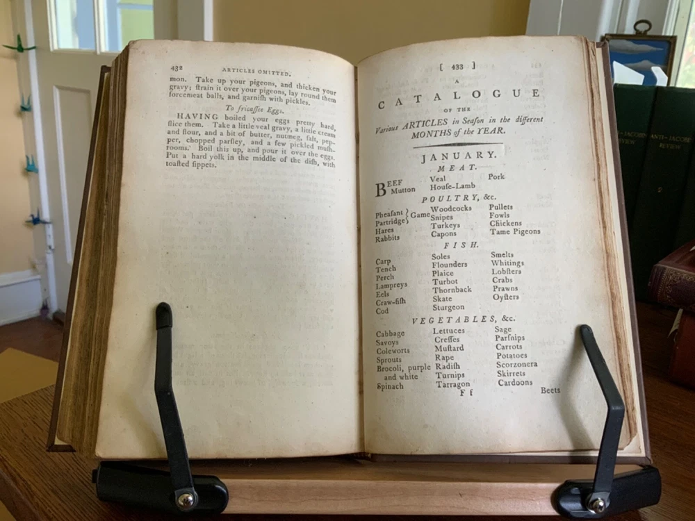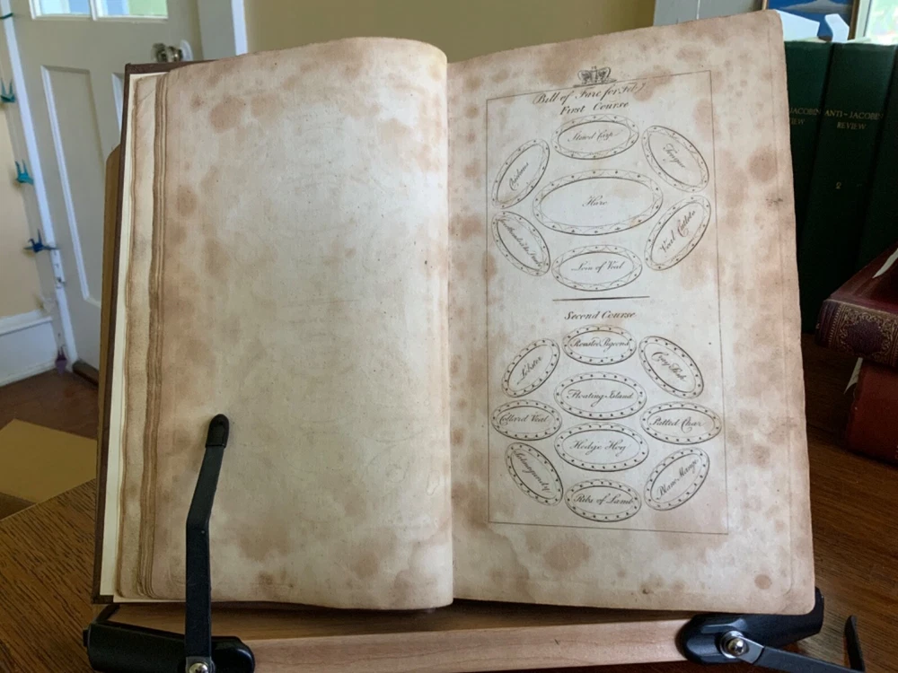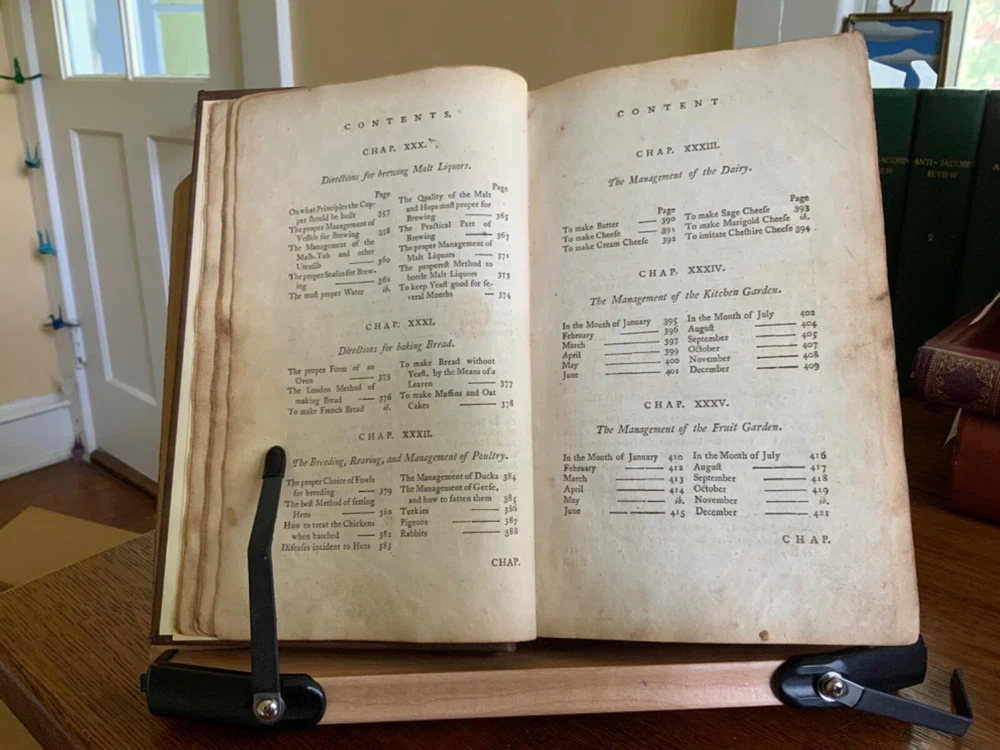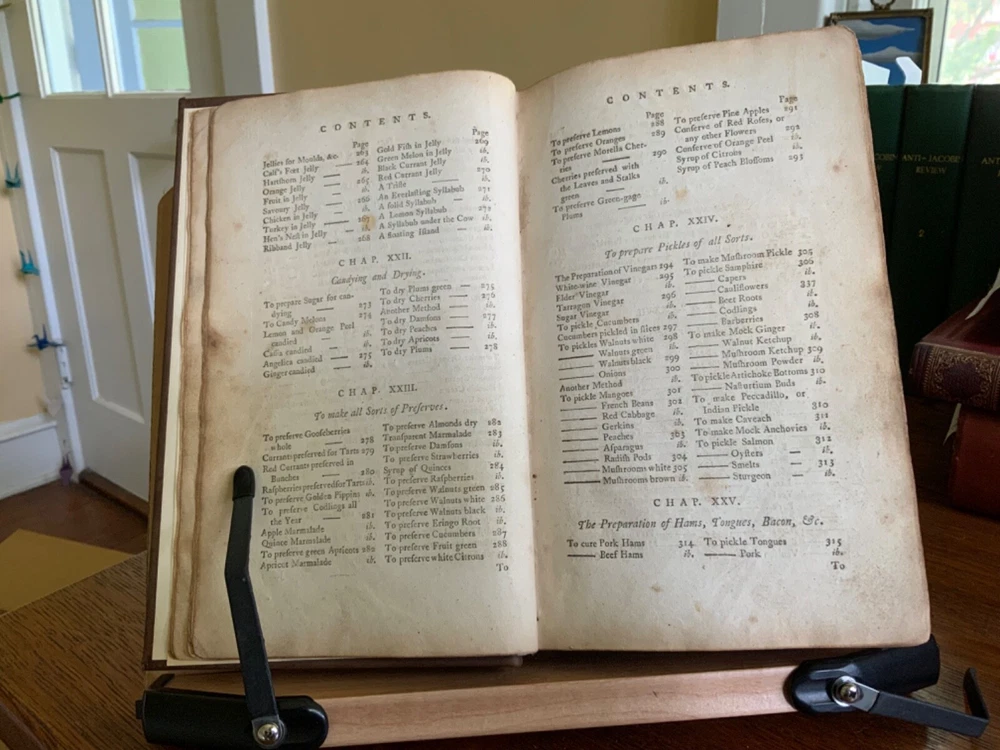 The universal cook, and city and country housekeeper : containing all the various branches of cookery ... Together with directions for baking bread, the management of poultry and the dairy, and the kitchen and fruit garden; with a catalogue of the various articles in season in the different months of the year. Besides a variety of useful and interesting tables. By Francis Collingwood, and John Woollams, The Second Edition. Printed by R. Noble, for J. Scatcherd, London, 1797, 451 pp plus publisher’s list, thirteen engraved plates, modern leather, 9 x 5.5”, 8vo. In fair condition. Later binding accomplished in the 1990’s. Light wear to extremities with minor scuffing to surface of leather. Handsomely bound. End papers fresh and clean. Gift inscription on pastedown dated 1996. Lacking title and frontis portrait. Facsimiles have been placed in the front gutter for reference. Light toning throughout with scattered, moderate foxing. Light offsetting from plates. Free of known marginalia. Collated and complete without title and frontis. Binding intact. Rear fly has old hand notations. Please see photos. Scarce cookery. The authors were described as the principal cooks at the Crown and Anchor Tavern. An early English cook book by “restaurant chefs” rather than by a housewife or cook working in a noble household. This work received the accolade of being translated into French in 1810. Gives a month-to-month calendar of appropriate cuisine for the seasons. COLM1797FMNX-823