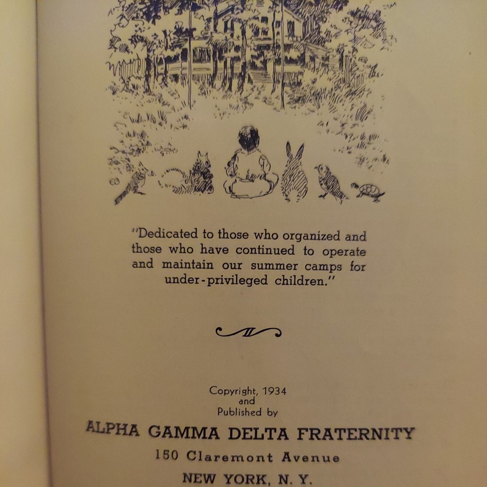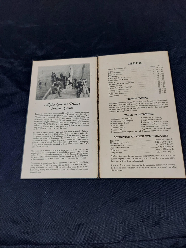 1934 The College Womans Cook Book Alpha Gamma Delta Second Edition New Recipes. This book is an excellent condition it is dedicated to those who organized and those who have continued to operate and maintain summer camps for under privileged children published by alpha gamma Delta fraternity in New York New York 96 pages of Vintage Recipes