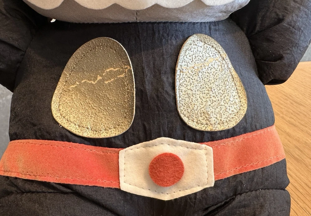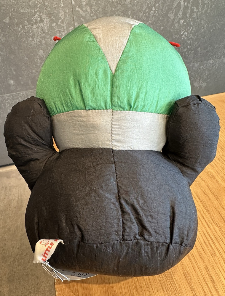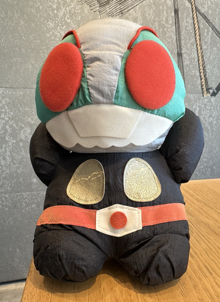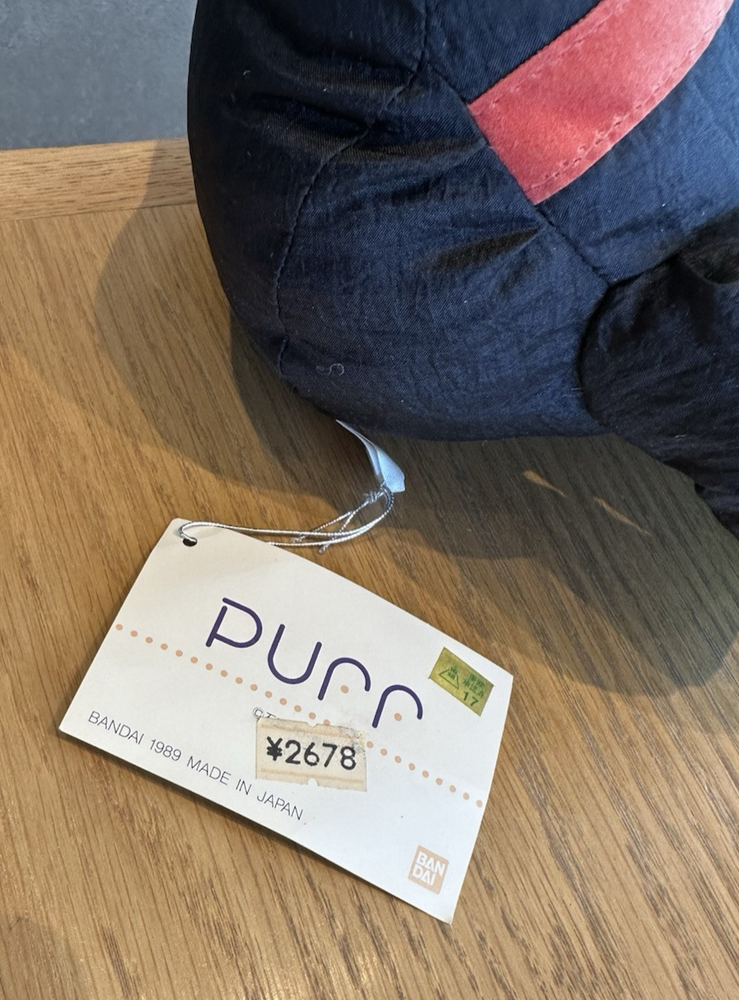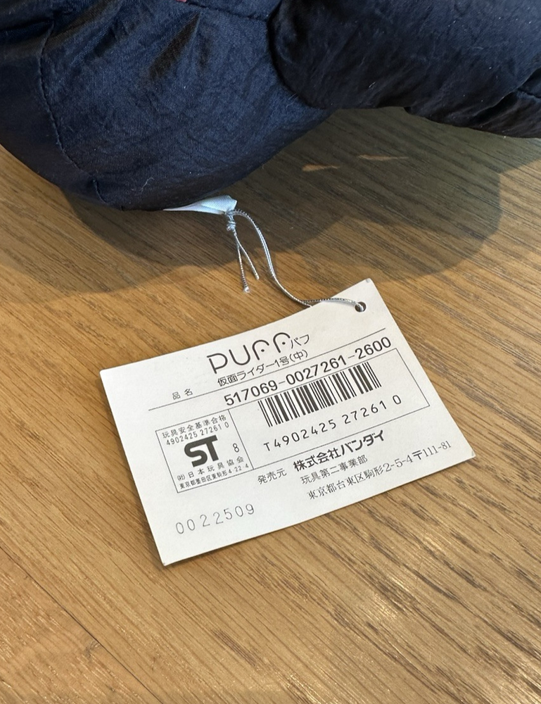 Vintage BANDAI 1989 made in Japan "Little Kid" Label soft Kamen Rider 1 (Ichigo) PURR Puff Plush with tag. Plush measures 10" when displayed sitting up. Plush was a toy shop showcase item that had been wrapped in a clear plastic bag by the shop owner (bag include). While the condition is NEW it does have some color fading on the red belt, and the two gold chest plates have cracking and flaking due to age. Comes from a smoke free toys shop.