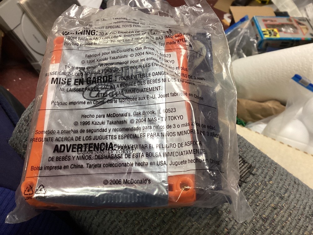 The product is a 2006 McDonald's Happy Meal Yu-Gi-Oh GX action figure of Yami Yugi, featuring a sealed card pack. This collectible item appeals to fans of the Yu-Gi-Oh! character family, specifically those aged 3 and older. The McDonald's branding adds a unique touch to this fast food promo toy, making it a sought-after item for collectors and enthusiasts alike. Made in China, this toy is a fun and nostalgic addition to any collection of Yu-Gi-Oh memorabilia.