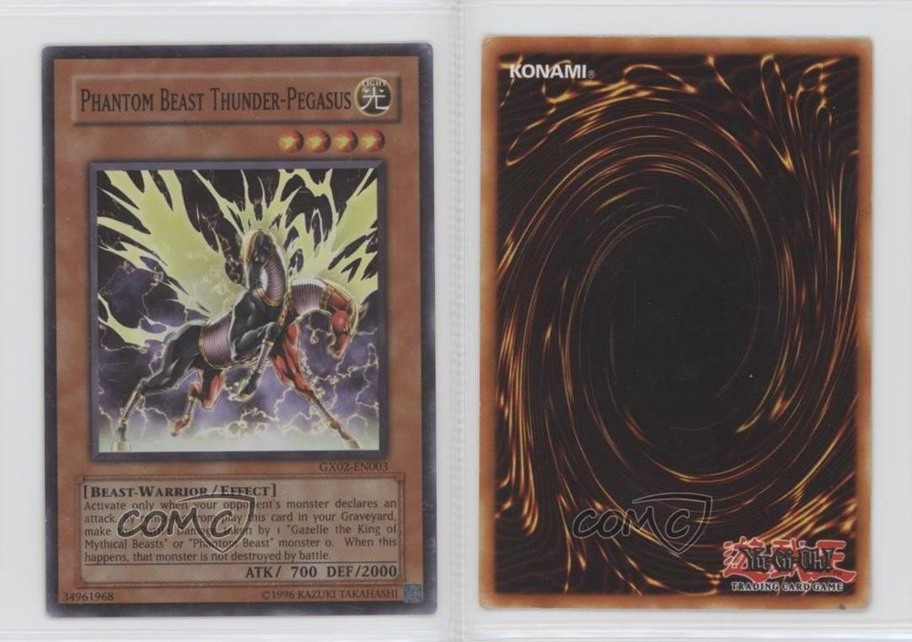 This card is a must-have for Yu-Gi-Oh! collectors—especially fans of the GX era. The Phantom Beast Thunder-Pegasus has a striking design and solid playability, making it a great addition to any deck. As a rare PSP promo, it holds nostalgic value for players who remember Tag Force. The condition is excellent, and COMC's reliable service ensures a smooth purchase. Definitely worth grabbing if you're into vintage Yu-Gi-Oh! cards!