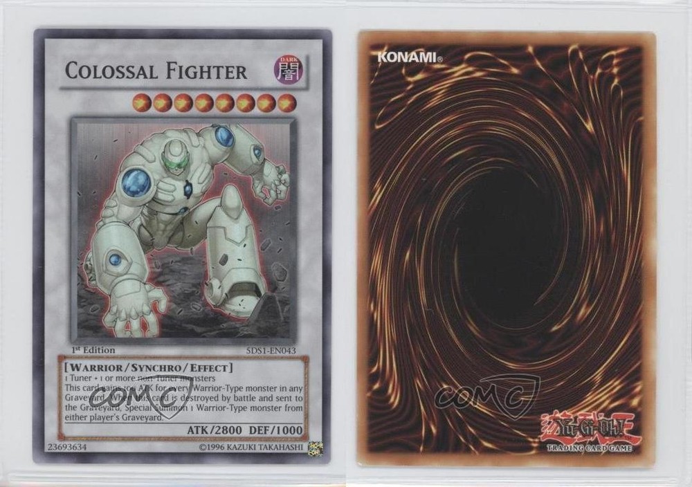 2008 Yu-Gi-Oh! 5D's - Starter Deck [Base] - 1st Edition #5DS1-EN043 Colossal Fighter COMC Item: 10542522 - YuGiOh Card - Featuring Colossal Fighter Search for more: 2008 Yu-Gi-Oh! 5D's Search for more: 2008 Yu-Gi-Oh! 5D's - Starter Deck [Base] - 1st Edition View all of our Listings Auctions Buy It Now About Us Located in the beautiful Pacific Northwest, COMC (Check Out My Cards) is the world's largest consignment service for trading card singles. More than 10,000 people have used our consignment service to list over 50 million trading cards. Find out how we can help you consign your items on eBay by contacting us through eBay messaging. COMC -- "The Safe & Easy Way to Buy & Sell" Raw Condition for Modern Cards Unless otherwise noted, raw modern cards are listed in Near Mint-Mint condition or better. A NM-MT card appears to be Mint at first glance, but upon closer inspection, may exhibit some of the following: minor print defects (e.g. roller marks, print line, dimple), minor scratches, slight edge wear, and slight corner wear. Centering is clearly visible in the images provided and does not factor into our condition assessment. Raw Condition for Vintage Cards Unless otherwise noted, raw vintage cards are listed in Excellent condition or better. An EX card may exhibit some of the following: minor rounding of corners, surface wear, print defects, light scratches, and slight edge wear/chipping. Centering is clearly visible in the images provided and does not factor into our condition assessment. Domestic Shipping Combined shipping for multiple items is available. To receive combined shipping, please ensure all desired items are in your eBay shopping cart before proceeding to checkout. eBay limits orders to 40 items per order. We automatically combine multiple orders placed on the same day. If you place multiple orders on the same day, please contact us to request a refund of applicable shipping costs. Signature confirmation may be required on invoices over $400. All cards are protected and shipped securely. International Shipping COMC offers eBay's International Shipping (EIS) for international orders under $2,500* (see country exceptions below). All duties and import fees are paid at checkout; in the rare event that there are additional import fees upon delivery, these are borne by the buyer. EIS packages route through a shipping hub in Erlanger, KY before shipping to their final destination. Please note that EIS does not allow for combined shipments. The shipping rates are determined by eBay and cannot be adjusted. *Maximum sale price exceptions: Colombia, Kuwait ($2,000); Taiwan ($1,539); Chile, Costa Rica, Guatemala, Honduras, Trinidad and Tobago ($1,000); Antigua and Barbuda, Aruba, Belize, Dominica, Grenada, Philippines, Saint Kitts and Nevis, Saint Lucia, Montserrat, Turks and Caicos Islands ($500); Dominican Republic, El Salvador ($200). Please request a shipping quote through eBay messaging for orders that exceed the maximum sale price supported by eBay's International Shipping. You will be responsible for all duties and import fees for international orders shipped outside the EIS. All cards are protected and shipped securely. Payment COMC does not accept offers on our cards through our eBay storefront. COMC utilizes eBay’s managed payments system. If you are experiencing difficulties making a payment, please contact eBay for assistance. Return Policy Returns are only accepted on the rare occasion the item is not as described. If you are making a return, please initiate the return process through eBay so a mailing label can be provided for you. Prior to listing, our expert team carefully assessed this item to represent it accurately. Please review the description and high-definition images prior to purchasing to ensure this item meets your satisfaction. We welcome you to contact us if you have further questions about this item. Trust and Integrity COMC carefully assesses each item consigned to us to prevent fraudulent items from entering the marketplace. If you believe an item offered on COMC may be fraudulent, please contact us with details so we can investigate the issue. Items we determine are outside our supported items policy may be removed. Last Modified: 5/16/2025 1:03:37 AM PDT