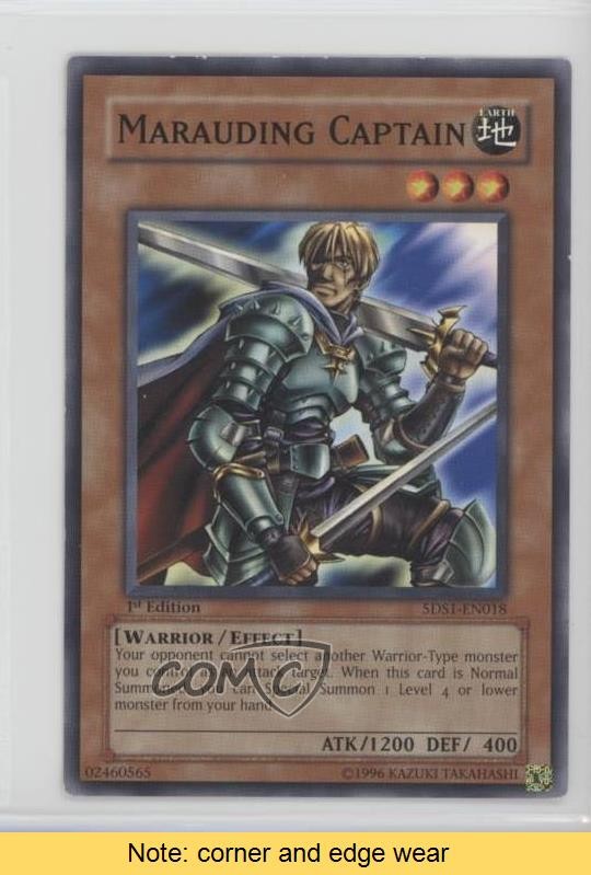 2008 Yu-Gi-Oh! 5D's - Starter Deck [Base] - 1st Edition #5DS1-EN018 Marauding Captain COMC Item: 87340071 CONDITION NOTE: corner and edge wear - YuGiOh Card - Featuring Marauding Captain Search for more: 2008 Yu-Gi-Oh! 5D's Search for more: 2008 Yu-Gi-Oh! 5D's - Starter Deck [Base] - 1st Edition View all of our Listings Auctions Buy It Now About Us Located in the beautiful Pacific Northwest, COMC (Check Out My Cards) is the world's largest consignment service for trading card singles. More than 10,000 people have used our consignment service to list over 50 million trading cards. Find out how we can help you consign your items on eBay by contacting us through eBay messaging. COMC -- "The Safe & Easy Way to Buy & Sell" Raw Condition for Modern Cards Unless otherwise noted, raw modern cards are listed in Near Mint-Mint condition or better. A NM-MT card appears to be Mint at first glance, but upon closer inspection, may exhibit some of the following: minor print defects (e.g. roller marks, print line, dimple), minor scratches, slight edge wear, and slight corner wear. Centering is clearly visible in the images provided and does not factor into our condition assessment. Raw Condition for Vintage Cards Unless otherwise noted, raw vintage cards are listed in Excellent condition or better. An EX card may exhibit some of the following: minor rounding of corners, surface wear, print defects, light scratches, and slight edge wear/chipping. Centering is clearly visible in the images provided and does not factor into our condition assessment. Domestic Shipping Combined shipping for multiple items is available. To receive combined shipping, please ensure all desired items are in your eBay shopping cart before proceeding to checkout. eBay limits orders to 40 items per order. We automatically combine multiple orders placed on the same day. If you place multiple orders on the same day, please contact us to request a refund of applicable shipping costs. Signature confirmation may be required on invoices over $400. All cards are protected and shipped securely. International Shipping COMC offers eBay's International Shipping (EIS) for international orders under $2,500* (see country exceptions below). All duties and import fees are paid at checkout; in the rare event that there are additional import fees upon delivery, these are borne by the buyer. EIS packages route through a shipping hub in Erlanger, KY before shipping to their final destination. Please note that EIS does not allow for combined shipments. The shipping rates are determined by eBay and cannot be adjusted. *Maximum sale price exceptions: Colombia, Kuwait ($2,000); Taiwan ($1,539); Chile, Costa Rica, Guatemala, Honduras, Trinidad and Tobago ($1,000); Antigua and Barbuda, Aruba, Belize, Dominica, Grenada, Philippines, Saint Kitts and Nevis, Saint Lucia, Montserrat, Turks and Caicos Islands ($500); Dominican Republic, El Salvador ($200). Please request a shipping quote through eBay messaging for orders that exceed the maximum sale price supported by eBay's International Shipping. You will be responsible for all duties and import fees for international orders shipped outside the EIS. All cards are protected and shipped securely. Payment COMC does not accept offers on our cards through our eBay storefront. COMC utilizes eBay’s managed payments system. If you are experiencing difficulties making a payment, please contact eBay for assistance. Return Policy Returns are only accepted on the rare occasion the item is not as described. If you are making a return, please initiate the return process through eBay so a mailing label can be provided for you. Prior to listing, our expert team carefully assessed this item to represent it accurately. Please review the description and high-definition images prior to purchasing to ensure this item meets your satisfaction. We welcome you to contact us if you have further questions about this item. Trust and Integrity COMC carefully assesses each item consigned to us to prevent fraudulent items from entering the marketplace. If you believe an item offered on COMC may be fraudulent, please contact us with details so we can investigate the issue. Items we determine are outside our supported items policy may be removed. Last Modified: 5/4/2025 10:01:41 AM PDT
