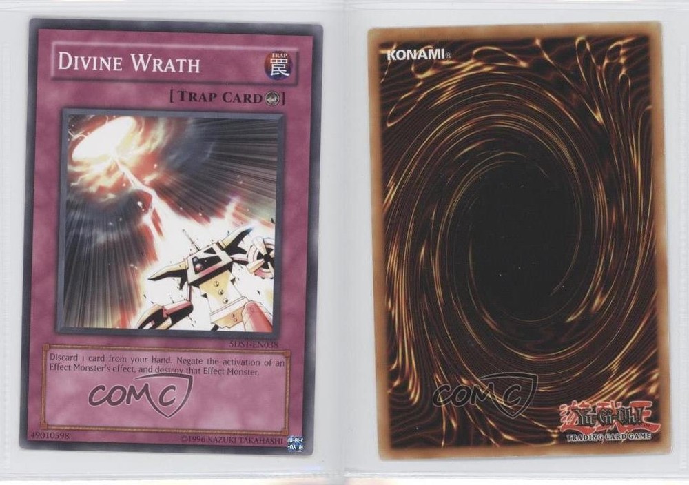 2008 Yu-Gi-Oh! 5D's - Starter Deck [Base] - Unlimited #5DS1-EN038 Divine Wrath COMC Item: 14648806 - YuGiOh Card - Featuring Divine Wrath Search for more: 2008 Yu-Gi-Oh! 5D's Search for more: 2008 Yu-Gi-Oh! 5D's - Starter Deck [Base] - Unlimited View all of our Listings Auctions Buy It Now About Us Located in the beautiful Pacific Northwest, COMC (Check Out My Cards) is the world's largest consignment service for trading card singles. More than 10,000 people have used our consignment service to list over 50 million trading cards. Find out how we can help you consign your items on eBay by contacting us through eBay messaging. COMC -- "The Safe & Easy Way to Buy & Sell" Raw Condition for Modern Cards Unless otherwise noted, raw modern cards are listed in Near Mint-Mint condition or better. A NM-MT card appears to be Mint at first glance, but upon closer inspection, may exhibit some of the following: minor print defects (e.g. roller marks, print line, dimple), minor scratches, slight edge wear, and slight corner wear. Centering is clearly visible in the images provided and does not factor into our condition assessment. Raw Condition for Vintage Cards Unless otherwise noted, raw vintage cards are listed in Excellent condition or better. An EX card may exhibit some of the following: minor rounding of corners, surface wear, print defects, light scratches, and slight edge wear/chipping. Centering is clearly visible in the images provided and does not factor into our condition assessment. Domestic Shipping Combined shipping for multiple items is available. To receive combined shipping, please ensure all desired items are in your eBay shopping cart before proceeding to checkout. eBay limits orders to 40 items per order. We automatically combine multiple orders placed on the same day. If you place multiple orders on the same day, please contact us to request a refund of applicable shipping costs. Signature confirmation may be required on invoices over $400. All cards are protected and shipped securely. International Shipping COMC offers eBay's International Shipping (EIS) for international orders under $2,500* (see country exceptions below). All duties and import fees are paid at checkout; in the rare event that there are additional import fees upon delivery, these are borne by the buyer. EIS packages route through a shipping hub in Erlanger, KY before shipping to their final destination. Please note that EIS does not allow for combined shipments. The shipping rates are determined by eBay and cannot be adjusted. *Maximum sale price exceptions: Colombia, Kuwait ($2,000); Taiwan ($1,539); Chile, Costa Rica, Guatemala, Honduras, Trinidad and Tobago ($1,000); Antigua and Barbuda, Aruba, Belize, Dominica, Grenada, Philippines, Saint Kitts and Nevis, Saint Lucia, Montserrat, Turks and Caicos Islands ($500); Dominican Republic, El Salvador ($200). Please request a shipping quote through eBay messaging for orders that exceed the maximum sale price supported by eBay's International Shipping. You will be responsible for all duties and import fees for international orders shipped outside the EIS. All cards are protected and shipped securely. Payment COMC does not accept offers on our cards through our eBay storefront. COMC utilizes eBay’s managed payments system. If you are experiencing difficulties making a payment, please contact eBay for assistance. Return Policy Returns are only accepted on the rare occasion the item is not as described. If you are making a return, please initiate the return process through eBay so a mailing label can be provided for you. Prior to listing, our expert team carefully assessed this item to represent it accurately. Please review the description and high-definition images prior to purchasing to ensure this item meets your satisfaction. We welcome you to contact us if you have further questions about this item. Trust and Integrity COMC carefully assesses each item consigned to us to prevent fraudulent items from entering the marketplace. If you believe an item offered on COMC may be fraudulent, please contact us with details so we can investigate the issue. Items we determine are outside our supported items policy may be removed. Last Modified: 6/12/2025 4:15:50 AM PDT