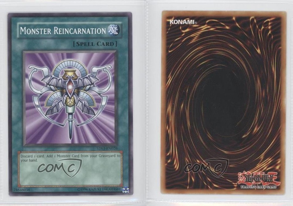 2008 Yu-Gi-Oh! 5D's - Starter Deck [Base] - Unlimited #5DS1-EN026 Monster Reincarnation COMC Item: 14648797 - YuGiOh Card - Featuring Monster Reincarnation Search for more: 2008 Yu-Gi-Oh! 5D's Search for more: 2008 Yu-Gi-Oh! 5D's - Starter Deck [Base] - Unlimited View all of our Listings Auctions Buy It Now About Us Located in the beautiful Pacific Northwest, COMC (Check Out My Cards) is the world's largest consignment service for trading card singles. More than 10,000 people have used our consignment service to list over 50 million trading cards. Find out how we can help you consign your items on eBay by contacting us through eBay messaging. COMC -- "The Safe & Easy Way to Buy & Sell" Raw Condition for Modern Cards Unless otherwise noted, raw modern cards are listed in Near Mint-Mint condition or better. A NM-MT card appears to be Mint at first glance, but upon closer inspection, may exhibit some of the following: minor print defects (e.g. roller marks, print line, dimple), minor scratches, slight edge wear, and slight corner wear. Centering is clearly visible in the images provided and does not factor into our condition assessment. Raw Condition for Vintage Cards Unless otherwise noted, raw vintage cards are listed in Excellent condition or better. An EX card may exhibit some of the following: minor rounding of corners, surface wear, print defects, light scratches, and slight edge wear/chipping. Centering is clearly visible in the images provided and does not factor into our condition assessment. Domestic Shipping Combined shipping for multiple items is available. To receive combined shipping, please ensure all desired items are in your eBay shopping cart before proceeding to checkout. eBay limits orders to 40 items per order. We automatically combine multiple orders placed on the same day. If you place multiple orders on the same day, please contact us to request a refund of applicable shipping costs. Signature confirmation may be required on invoices over $400. All cards are protected and shipped securely. International Shipping COMC offers eBay's International Shipping (EIS) for international orders under $2,500* (see country exceptions below). All duties and import fees are paid at checkout; in the rare event that there are additional import fees upon delivery, these are borne by the buyer. EIS packages route through a shipping hub in Erlanger, KY before shipping to their final destination. Please note that EIS does not allow for combined shipments. The shipping rates are determined by eBay and cannot be adjusted. *Maximum sale price exceptions: Colombia, Kuwait ($2,000); Taiwan ($1,539); Chile, Costa Rica, Guatemala, Honduras, Trinidad and Tobago ($1,000); Antigua and Barbuda, Aruba, Belize, Dominica, Grenada, Philippines, Saint Kitts and Nevis, Saint Lucia, Montserrat, Turks and Caicos Islands ($500); Dominican Republic, El Salvador ($200). Please request a shipping quote through eBay messaging for orders that exceed the maximum sale price supported by eBay's International Shipping. You will be responsible for all duties and import fees for international orders shipped outside the EIS. All cards are protected and shipped securely. Payment COMC does not accept offers on our cards through our eBay storefront. COMC utilizes eBay’s managed payments system. If you are experiencing difficulties making a payment, please contact eBay for assistance. Return Policy Returns are only accepted on the rare occasion the item is not as described. If you are making a return, please initiate the return process through eBay so a mailing label can be provided for you. Prior to listing, our expert team carefully assessed this item to represent it accurately. Please review the description and high-definition images prior to purchasing to ensure this item meets your satisfaction. We welcome you to contact us if you have further questions about this item. Trust and Integrity COMC carefully assesses each item consigned to us to prevent fraudulent items from entering the marketplace. If you believe an item offered on COMC may be fraudulent, please contact us with details so we can investigate the issue. Items we determine are outside our supported items policy may be removed. Last Modified: 6/12/2025 4:15:39 AM PDT