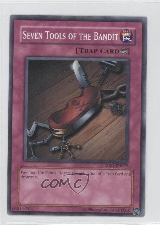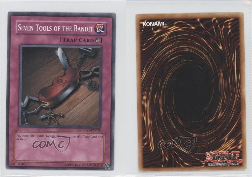 2008 Yu-Gi-Oh! 5D's - Starter Deck [Base] - Unlimited #5DS1-EN039 Seven Tools of the Bandit COMC Item: 14648798 - YuGiOh Card - Featuring Seven Tools of the Bandit Search for more: 2008 Yu-Gi-Oh! 5D's Search for more: 2008 Yu-Gi-Oh! 5D's - Starter Deck [Base] - Unlimited View all of our Listings Auctions Buy It Now About Us Located in the beautiful Pacific Northwest, COMC (Check Out My Cards) is the world's largest consignment service for trading card singles. More than 10,000 people have used our consignment service to list over 50 million trading cards. Find out how we can help you consign your items on eBay by contacting us through eBay messaging. COMC -- "The Safe & Easy Way to Buy & Sell" Raw Condition for Modern Cards Unless otherwise noted, raw modern cards are listed in Near Mint-Mint condition or better. A NM-MT card appears to be Mint at first glance, but upon closer inspection, may exhibit some of the following: minor print defects (e.g. roller marks, print line, dimple), minor scratches, slight edge wear, and slight corner wear. Centering is clearly visible in the images provided and does not factor into our condition assessment. Raw Condition for Vintage Cards Unless otherwise noted, raw vintage cards are listed in Excellent condition or better. An EX card may exhibit some of the following: minor rounding of corners, surface wear, print defects, light scratches, and slight edge wear/chipping. Centering is clearly visible in the images provided and does not factor into our condition assessment. Domestic Shipping Combined shipping for multiple items is available. To receive combined shipping, please ensure all desired items are in your eBay shopping cart before proceeding to checkout. eBay limits orders to 40 items per order. We automatically combine multiple orders placed on the same day. If you place multiple orders on the same day, please contact us to request a refund of applicable shipping costs. Signature confirmation may be required on invoices over $400. All cards are protected and shipped securely. International Shipping COMC offers eBay's International Shipping (EIS) for international orders under $2,500* (see country exceptions below). All duties and import fees are paid at checkout; in the rare event that there are additional import fees upon delivery, these are borne by the buyer. EIS packages route through a shipping hub in Erlanger, KY before shipping to their final destination. Please note that EIS does not allow for combined shipments. The shipping rates are determined by eBay and cannot be adjusted. *Maximum sale price exceptions: Colombia, Kuwait ($2,000); Taiwan ($1,539); Chile, Costa Rica, Guatemala, Honduras, Trinidad and Tobago ($1,000); Antigua and Barbuda, Aruba, Belize, Dominica, Grenada, Philippines, Saint Kitts and Nevis, Saint Lucia, Montserrat, Turks and Caicos Islands ($500); Dominican Republic, El Salvador ($200). Please request a shipping quote through eBay messaging for orders that exceed the maximum sale price supported by eBay's International Shipping. You will be responsible for all duties and import fees for international orders shipped outside the EIS. All cards are protected and shipped securely. Payment COMC does not accept offers on our cards through our eBay storefront. COMC utilizes eBay’s managed payments system. If you are experiencing difficulties making a payment, please contact eBay for assistance. Return Policy Returns are only accepted on the rare occasion the item is not as described. If you are making a return, please initiate the return process through eBay so a mailing label can be provided for you. Prior to listing, our expert team carefully assessed this item to represent it accurately. Please review the description and high-definition images prior to purchasing to ensure this item meets your satisfaction. We welcome you to contact us if you have further questions about this item. Trust and Integrity COMC carefully assesses each item consigned to us to prevent fraudulent items from entering the marketplace. If you believe an item offered on COMC may be fraudulent, please contact us with details so we can investigate the issue. Items we determine are outside our supported items policy may be removed. Last Modified: 6/12/2025 4:14:36 AM PDT