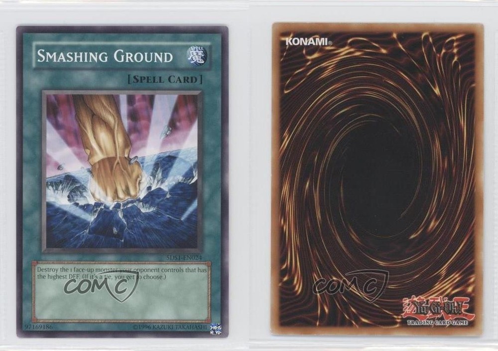 2008 Yu-Gi-Oh! 5D's - Starter Deck [Base] - Unlimited #5DS1-EN024 Smashing Ground COMC Item: 14648793 - YuGiOh Card - Featuring Smashing Ground Search for more: 2008 Yu-Gi-Oh! 5D's Search for more: 2008 Yu-Gi-Oh! 5D's - Starter Deck [Base] - Unlimited View all of our Listings Auctions Buy It Now About Us Located in the beautiful Pacific Northwest, COMC (Check Out My Cards) is the world's largest consignment service for trading card singles. More than 10,000 people have used our consignment service to list over 50 million trading cards. Find out how we can help you consign your items on eBay by contacting us through eBay messaging. COMC -- "The Safe & Easy Way to Buy & Sell" Raw Condition for Modern Cards Unless otherwise noted, raw modern cards are listed in Near Mint-Mint condition or better. A NM-MT card appears to be Mint at first glance, but upon closer inspection, may exhibit some of the following: minor print defects (e.g. roller marks, print line, dimple), minor scratches, slight edge wear, and slight corner wear. Centering is clearly visible in the images provided and does not factor into our condition assessment. Raw Condition for Vintage Cards Unless otherwise noted, raw vintage cards are listed in Excellent condition or better. An EX card may exhibit some of the following: minor rounding of corners, surface wear, print defects, light scratches, and slight edge wear/chipping. Centering is clearly visible in the images provided and does not factor into our condition assessment. Domestic Shipping Combined shipping for multiple items is available. To receive combined shipping, please ensure all desired items are in your eBay shopping cart before proceeding to checkout. eBay limits orders to 40 items per order. We automatically combine multiple orders placed on the same day. If you place multiple orders on the same day, please contact us to request a refund of applicable shipping costs. Signature confirmation may be required on invoices over $400. All cards are protected and shipped securely. International Shipping COMC offers eBay's International Shipping (EIS) for international orders under $2,500* (see country exceptions below). All duties and import fees are paid at checkout; in the rare event that there are additional import fees upon delivery, these are borne by the buyer. EIS packages route through a shipping hub in Erlanger, KY before shipping to their final destination. Please note that EIS does not allow for combined shipments. The shipping rates are determined by eBay and cannot be adjusted. *Maximum sale price exceptions: Colombia, Kuwait ($2,000); Taiwan ($1,539); Chile, Costa Rica, Guatemala, Honduras, Trinidad and Tobago ($1,000); Antigua and Barbuda, Aruba, Belize, Dominica, Grenada, Philippines, Saint Kitts and Nevis, Saint Lucia, Montserrat, Turks and Caicos Islands ($500); Dominican Republic, El Salvador ($200). Please request a shipping quote through eBay messaging for orders that exceed the maximum sale price supported by eBay's International Shipping. You will be responsible for all duties and import fees for international orders shipped outside the EIS. All cards are protected and shipped securely. Payment COMC does not accept offers on our cards through our eBay storefront. COMC utilizes eBay’s managed payments system. If you are experiencing difficulties making a payment, please contact eBay for assistance. Return Policy Returns are only accepted on the rare occasion the item is not as described. If you are making a return, please initiate the return process through eBay so a mailing label can be provided for you. Prior to listing, our expert team carefully assessed this item to represent it accurately. Please review the description and high-definition images prior to purchasing to ensure this item meets your satisfaction. We welcome you to contact us if you have further questions about this item. Trust and Integrity COMC carefully assesses each item consigned to us to prevent fraudulent items from entering the marketplace. If you believe an item offered on COMC may be fraudulent, please contact us with details so we can investigate the issue. Items we determine are outside our supported items policy may be removed. Last Modified: 6/12/2025 4:15:32 AM PDT