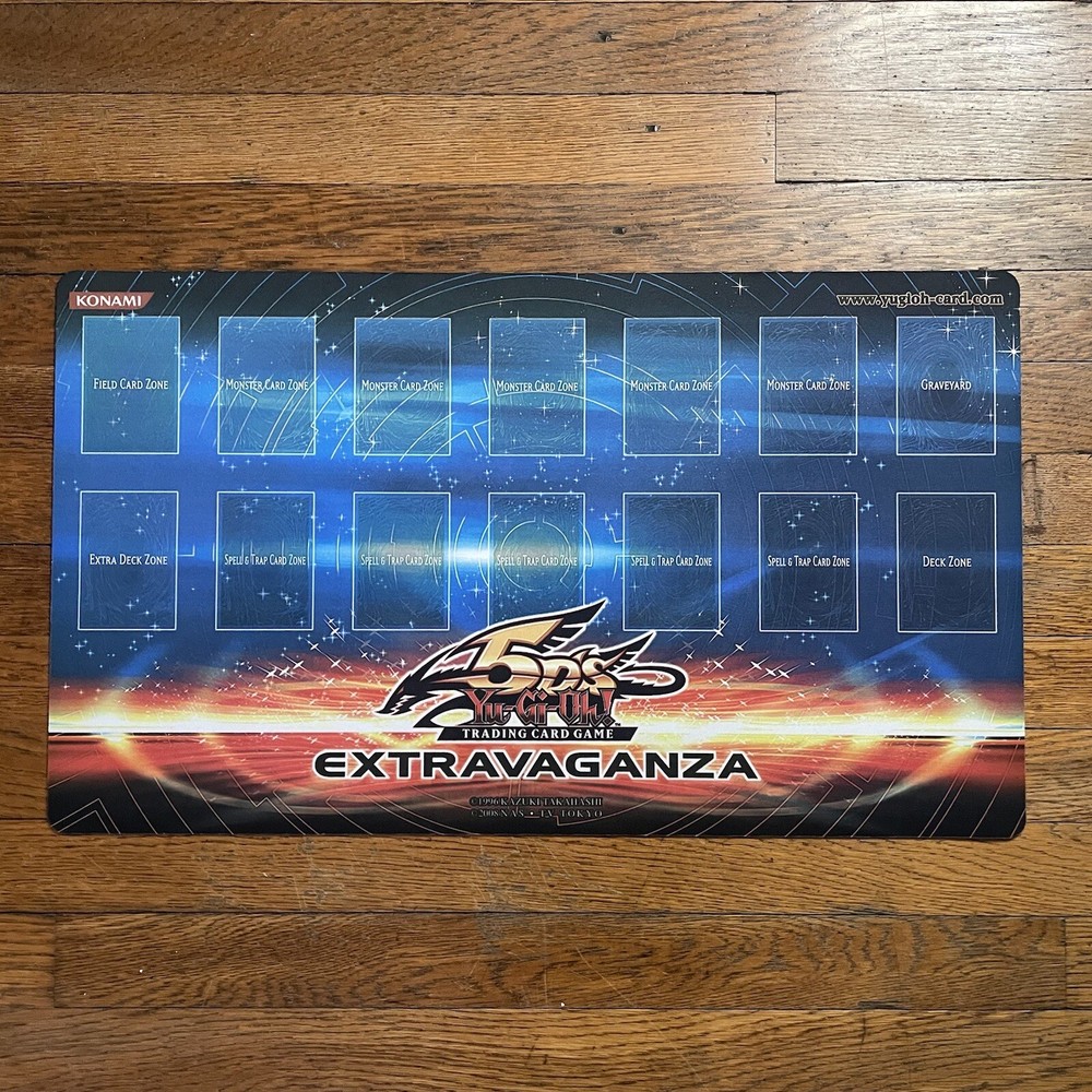 2008 5Ds Extravaganza Mat for sale from my personal collection. I received this mat from an official judge of many years. They won this mat in a competition years ago. They got second and picked this one over a dracossack mat. I haven’t been able to find much on this mat and the last listing to sell was 10 years ago on troll and toad, so my price is negotiable. The only comp was a seller from Japan If you have any questions do not hesitate to ask. Yugioh is my main squeeze so I can answer most obscure questions
