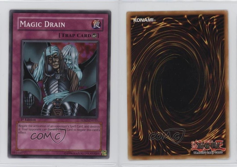 2009 Yu-Gi-Oh! 5D's 2 - Starter Deck [Base] - 1st Edition #5DS2-EN035 Magic Drain COMC Item: 208538554 - YuGiOh Card - Featuring Magic Drain Search for more: 2009 Yu-Gi-Oh! 5D's 2 Search for more: 2009 Yu-Gi-Oh! 5D's 2 - Starter Deck [Base] - 1st Edition View all of our Listings Auctions Buy It Now About Us Located in the beautiful Pacific Northwest, COMC (Check Out My Cards) is the world's largest consignment service for trading card singles. More than 10,000 people have used our consignment service to list over 50 million trading cards. Find out how we can help you consign your items on eBay by contacting us through eBay messaging. COMC -- "The Safe & Easy Way to Buy & Sell" Raw Condition for Modern Cards Unless otherwise noted, raw modern cards are listed in Near Mint-Mint condition or better. A NM-MT card appears to be Mint at first glance, but upon closer inspection, may exhibit some of the following: minor print defects (e.g. roller marks, print line, dimple), minor scratches, slight edge wear, and slight corner wear. Centering is clearly visible in the images provided and does not factor into our condition assessment. Raw Condition for Vintage Cards Unless otherwise noted, raw vintage cards are listed in Excellent condition or better. An EX card may exhibit some of the following: minor rounding of corners, surface wear, print defects, light scratches, and slight edge wear/chipping. Centering is clearly visible in the images provided and does not factor into our condition assessment. Domestic Shipping Combined shipping for multiple items is available. To receive combined shipping, please ensure all desired items are in your eBay shopping cart before proceeding to checkout. eBay limits orders to 40 items per order. We automatically combine multiple orders placed on the same day. If you place multiple orders on the same day, please contact us to request a refund of applicable shipping costs. Signature confirmation may be required on invoices over $400. All cards are protected and shipped securely. International Shipping COMC offers eBay's International Shipping (EIS) for international orders under $2,500* (see country exceptions below). All duties and import fees are paid at checkout; in the rare event that there are additional import fees upon delivery, these are borne by the buyer. EIS packages route through a shipping hub in Erlanger, KY before shipping to their final destination. Please note that EIS does not allow for combined shipments. The shipping rates are determined by eBay and cannot be adjusted. *Maximum sale price exceptions: Colombia, Kuwait ($2,000); Taiwan ($1,539); Chile, Costa Rica, Guatemala, Honduras, Trinidad and Tobago ($1,000); Antigua and Barbuda, Aruba, Belize, Dominica, Grenada, Philippines, Saint Kitts and Nevis, Saint Lucia, Montserrat, Turks and Caicos Islands ($500); Dominican Republic, El Salvador ($200). Please request a shipping quote through eBay messaging for orders that exceed the maximum sale price supported by eBay's International Shipping. You will be responsible for all duties and import fees for international orders shipped outside the EIS. All cards are protected and shipped securely. Payment COMC does not accept offers on our cards through our eBay storefront. COMC utilizes eBay’s managed payments system. If you are experiencing difficulties making a payment, please contact eBay for assistance. Return Policy Returns are only accepted on the rare occasion the item is not as described. If you are making a return, please initiate the return process through eBay so a mailing label can be provided for you. Prior to listing, our expert team carefully assessed this item to represent it accurately. Please review the description and high-definition images prior to purchasing to ensure this item meets your satisfaction. We welcome you to contact us if you have further questions about this item. Trust and Integrity COMC carefully assesses each item consigned to us to prevent fraudulent items from entering the marketplace. If you believe an item offered on COMC may be fraudulent, please contact us with details so we can investigate the issue. Items we determine are outside our supported items policy may be removed. Last Modified: 6/18/2025 4:23:10 PM PDT
