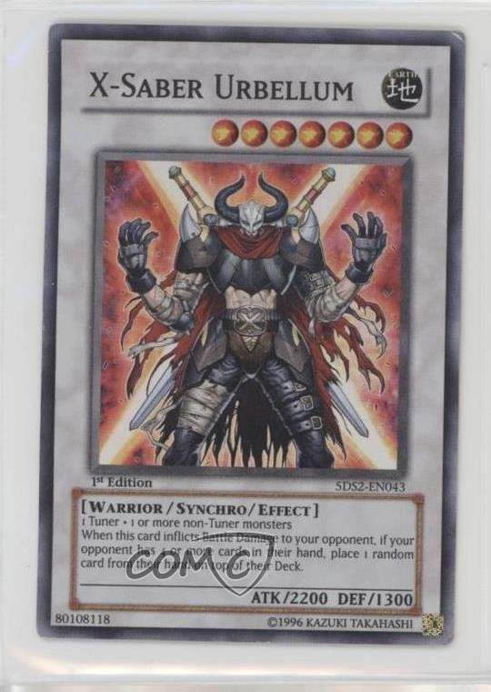 2009 Yu-Gi-Oh! 5D's 2 - Starter Deck [Base] - 1st Edition #5DS2-EN043 X-Saber Urbellum COMC Item: 151931062 - YuGiOh Card - Featuring X-Saber Urbellum Search for more: 2009 Yu-Gi-Oh! 5D's 2 Search for more: 2009 Yu-Gi-Oh! 5D's 2 - Starter Deck [Base] - 1st Edition View all of our Listings Auctions Buy It Now About Us Located in the beautiful Pacific Northwest, COMC (Check Out My Cards) is the world's largest consignment service for trading card singles. More than 10,000 people have used our consignment service to list over 50 million trading cards. Find out how we can help you consign your items on eBay by contacting us through eBay messaging. COMC -- "The Safe & Easy Way to Buy & Sell" Raw Condition for Modern Cards Unless otherwise noted, raw modern cards are listed in Near Mint-Mint condition or better. A NM-MT card appears to be Mint at first glance, but upon closer inspection, may exhibit some of the following: minor print defects (e.g. roller marks, print line, dimple), minor scratches, slight edge wear, and slight corner wear. Centering is clearly visible in the images provided and does not factor into our condition assessment. Raw Condition for Vintage Cards Unless otherwise noted, raw vintage cards are listed in Excellent condition or better. An EX card may exhibit some of the following: minor rounding of corners, surface wear, print defects, light scratches, and slight edge wear/chipping. Centering is clearly visible in the images provided and does not factor into our condition assessment. Domestic Shipping Combined shipping for multiple items is available. To receive combined shipping, please ensure all desired items are in your eBay shopping cart before proceeding to checkout. eBay limits orders to 40 items per order. We automatically combine multiple orders placed on the same day. If you place multiple orders on the same day, please contact us to request a refund of applicable shipping costs. Signature confirmation may be required on invoices over $400. All cards are protected and shipped securely. International Shipping COMC offers eBay's International Shipping (EIS) for international orders under $2,500* (see country exceptions below). All duties and import fees are paid at checkout; in the rare event that there are additional import fees upon delivery, these are borne by the buyer. EIS packages route through a shipping hub in Erlanger, KY before shipping to their final destination. Please note that EIS does not allow for combined shipments. The shipping rates are determined by eBay and cannot be adjusted. *Maximum sale price exceptions: Colombia, Kuwait ($2,000); Taiwan ($1,539); Chile, Costa Rica, Guatemala, Honduras, Trinidad and Tobago ($1,000); Antigua and Barbuda, Aruba, Belize, Dominica, Grenada, Philippines, Saint Kitts and Nevis, Saint Lucia, Montserrat, Turks and Caicos Islands ($500); Dominican Republic, El Salvador ($200). Please request a shipping quote through eBay messaging for orders that exceed the maximum sale price supported by eBay's International Shipping. You will be responsible for all duties and import fees for international orders shipped outside the EIS. All cards are protected and shipped securely. Payment COMC does not accept offers on our cards through our eBay storefront. COMC utilizes eBay’s managed payments system. If you are experiencing difficulties making a payment, please contact eBay for assistance. Return Policy Returns are only accepted on the rare occasion the item is not as described. If you are making a return, please initiate the return process through eBay so a mailing label can be provided for you. Prior to listing, our expert team carefully assessed this item to represent it accurately. Please review the description and high-definition images prior to purchasing to ensure this item meets your satisfaction. We welcome you to contact us if you have further questions about this item. Trust and Integrity COMC carefully assesses each item consigned to us to prevent fraudulent items from entering the marketplace. If you believe an item offered on COMC may be fraudulent, please contact us with details so we can investigate the issue. Items we determine are outside our supported items policy may be removed. Last Modified: 5/17/2025 8:04:53 AM PDT