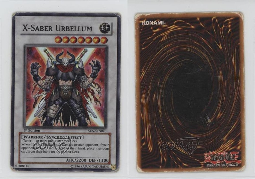 2009 Yu-Gi-Oh! 5D's 2 - Starter Deck [Base] - 1st Edition #5DS2-EN043 X-Saber Urbellum COMC Item: 247053810 - YuGiOh Card - Featuring X-Saber Urbellum Search for more: 2009 Yu-Gi-Oh! 5D's 2 Search for more: 2009 Yu-Gi-Oh! 5D's 2 - Starter Deck [Base] - 1st Edition View all of our Listings Auctions Buy It Now About Us Located in the beautiful Pacific Northwest, COMC (Check Out My Cards) is the world's largest consignment service for trading card singles. More than 10,000 people have used our consignment service to list over 50 million trading cards. Find out how we can help you consign your items on eBay by contacting us through eBay messaging. COMC -- "The Safe & Easy Way to Buy & Sell" Raw Condition for Modern Cards Unless otherwise noted, raw modern cards are listed in Near Mint-Mint condition or better. A NM-MT card appears to be Mint at first glance, but upon closer inspection, may exhibit some of the following: minor print defects (e.g. roller marks, print line, dimple), minor scratches, slight edge wear, and slight corner wear. Centering is clearly visible in the images provided and does not factor into our condition assessment. Raw Condition for Vintage Cards Unless otherwise noted, raw vintage cards are listed in Excellent condition or better. An EX card may exhibit some of the following: minor rounding of corners, surface wear, print defects, light scratches, and slight edge wear/chipping. Centering is clearly visible in the images provided and does not factor into our condition assessment. Domestic Shipping Combined shipping for multiple items is available. To receive combined shipping, please ensure all desired items are in your eBay shopping cart before proceeding to checkout. eBay limits orders to 40 items per order. We automatically combine multiple orders placed on the same day. If you place multiple orders on the same day, please contact us to request a refund of applicable shipping costs. Signature confirmation may be required on invoices over $400. All cards are protected and shipped securely. International Shipping COMC offers eBay's International Shipping (EIS) for international orders under $2,500* (see country exceptions below). All duties and import fees are paid at checkout; in the rare event that there are additional import fees upon delivery, these are borne by the buyer. EIS packages route through a shipping hub in Erlanger, KY before shipping to their final destination. Please note that EIS does not allow for combined shipments. The shipping rates are determined by eBay and cannot be adjusted. *Maximum sale price exceptions: Colombia, Kuwait ($2,000); Taiwan ($1,539); Chile, Costa Rica, Guatemala, Honduras, Trinidad and Tobago ($1,000); Antigua and Barbuda, Aruba, Belize, Dominica, Grenada, Philippines, Saint Kitts and Nevis, Saint Lucia, Montserrat, Turks and Caicos Islands ($500); Dominican Republic, El Salvador ($200). Please request a shipping quote through eBay messaging for orders that exceed the maximum sale price supported by eBay's International Shipping. You will be responsible for all duties and import fees for international orders shipped outside the EIS. All cards are protected and shipped securely. Payment COMC does not accept offers on our cards through our eBay storefront. COMC utilizes eBay’s managed payments system. If you are experiencing difficulties making a payment, please contact eBay for assistance. Return Policy Returns are only accepted on the rare occasion the item is not as described. If you are making a return, please initiate the return process through eBay so a mailing label can be provided for you. Prior to listing, our expert team carefully assessed this item to represent it accurately. Please review the description and high-definition images prior to purchasing to ensure this item meets your satisfaction. We welcome you to contact us if you have further questions about this item. Trust and Integrity COMC carefully assesses each item consigned to us to prevent fraudulent items from entering the marketplace. If you believe an item offered on COMC may be fraudulent, please contact us with details so we can investigate the issue. Items we determine are outside our supported items policy may be removed. Last Modified: 5/17/2025 8:05:23 AM PDT