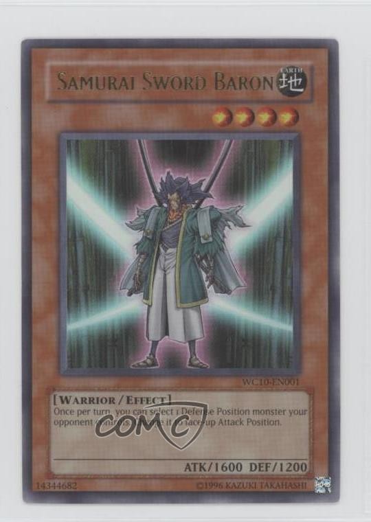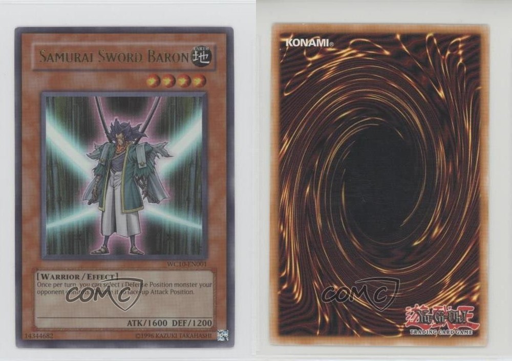 2010 Yu-Gi-Oh! 5D's World Championship 2010: Reverse of Arcadia - Nintendo DS Promos #WC10-EN001 Samurai Sword Baron COMC Item: 45785612 - YuGiOh Card - Featuring Samurai Sword Baron Search for more: 2010 Yu-Gi-Oh! 5D's World Championship 2010: Reverse of Arcadia Search for more: 2010 Yu-Gi-Oh! 5D's World Championship 2010: Reverse of Arcadia - Nintendo DS Promos View all of our Listings Auctions Buy It Now About Us Located in the beautiful Pacific Northwest, COMC (Check Out My Cards) is the world's largest consignment service for trading card singles. More than 10,000 people have used our consignment service to list over 50 million trading cards. Find out how we can help you consign your items on eBay by contacting us through eBay messaging. COMC -- "The Safe & Easy Way to Buy & Sell" Raw Condition for Modern Cards Unless otherwise noted, raw modern cards are listed in Near Mint-Mint condition or better. A NM-MT card appears to be Mint at first glance, but upon closer inspection, may exhibit some of the following: minor print defects (e.g. roller marks, print line, dimple), minor scratches, slight edge wear, and slight corner wear. Centering is clearly visible in the images provided and does not factor into our condition assessment. Raw Condition for Vintage Cards Unless otherwise noted, raw vintage cards are listed in Excellent condition or better. An EX card may exhibit some of the following: minor rounding of corners, surface wear, print defects, light scratches, and slight edge wear/chipping. Centering is clearly visible in the images provided and does not factor into our condition assessment. Domestic Shipping Combined shipping for multiple items is available. To receive combined shipping, please ensure all desired items are in your eBay shopping cart before proceeding to checkout. eBay limits orders to 40 items per order. We automatically combine multiple orders placed on the same day. If you place multiple orders on the same day, please contact us to request a refund of applicable shipping costs. Signature confirmation may be required on invoices over $400. All cards are protected and shipped securely. International Shipping COMC offers eBay's International Shipping (EIS) for international orders under $2,500* (see country exceptions below). All duties and import fees are paid at checkout; in the rare event that there are additional import fees upon delivery, these are borne by the buyer. EIS packages route through a shipping hub in Erlanger, KY before shipping to their final destination. Please note that EIS does not allow for combined shipments. The shipping rates are determined by eBay and cannot be adjusted. *Maximum sale price exceptions: Colombia, Kuwait ($2,000); Taiwan ($1,539); Chile, Costa Rica, Guatemala, Honduras, Trinidad and Tobago ($1,000); Antigua and Barbuda, Aruba, Belize, Dominica, Grenada, Philippines, Saint Kitts and Nevis, Saint Lucia, Montserrat, Turks and Caicos Islands ($500); Dominican Republic, El Salvador ($200). Please request a shipping quote through eBay messaging for orders that exceed the maximum sale price supported by eBay's International Shipping. You will be responsible for all duties and import fees for international orders shipped outside the EIS. All cards are protected and shipped securely. Payment COMC does not accept offers on our cards through our eBay storefront. COMC utilizes eBay’s managed payments system. If you are experiencing difficulties making a payment, please contact eBay for assistance. Return Policy Returns are only accepted on the rare occasion the item is not as described. If you are making a return, please initiate the return process through eBay so a mailing label can be provided for you. Prior to listing, our expert team carefully assessed this item to represent it accurately. Please review the description and high-definition images prior to purchasing to ensure this item meets your satisfaction. We welcome you to contact us if you have further questions about this item. Trust and Integrity COMC carefully assesses each item consigned to us to prevent fraudulent items from entering the marketplace. If you believe an item offered on COMC may be fraudulent, please contact us with details so we can investigate the issue. Items we determine are outside our supported items policy may be removed. Last Modified: 6/22/2025 8:01:30 PM PDT