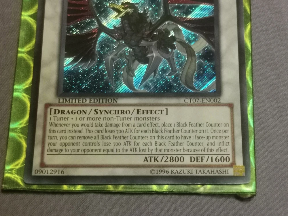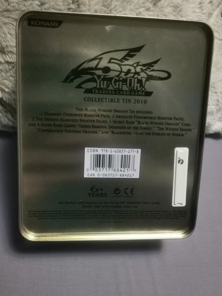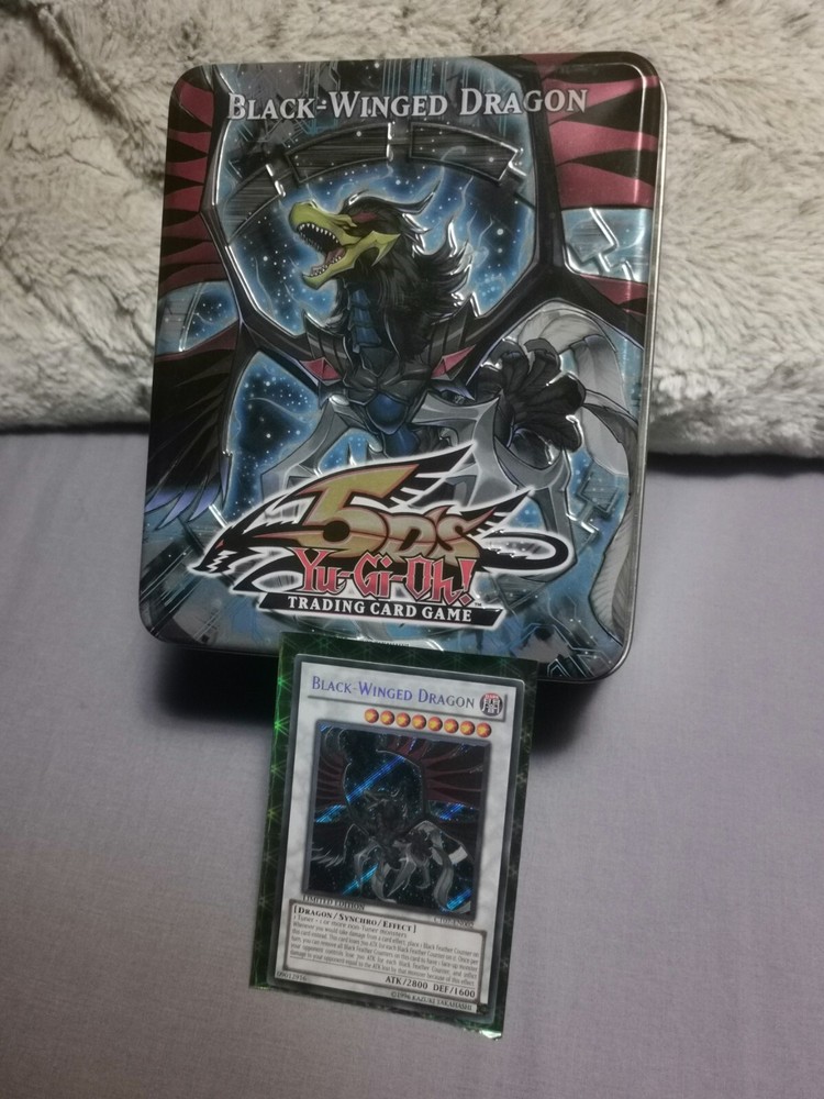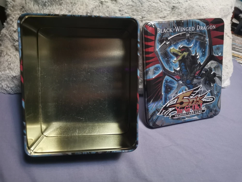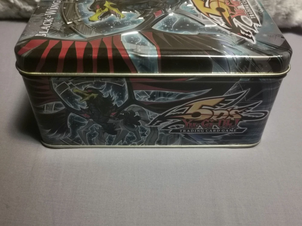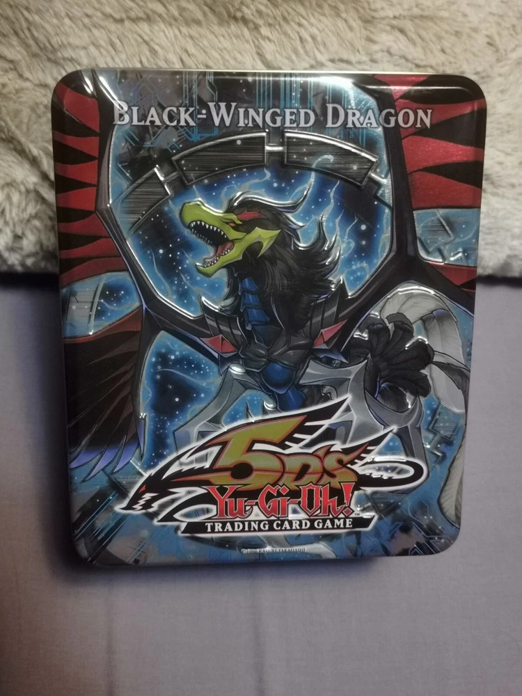 Crow was a great character in yugioh 5D's. Blackwing monsters are fun to play, and I encourage you to have some fun adding Black-Winged Dragon to your deck! If you need more pictures or have any questions at all, please just ask! Let's rev it up! This product is a 2010 Yu-Gi-Oh! 5DS Collector's Tin featuring a Black-Winged Dragon promo card. The card is a Secret Rare Synchro card from the set "5D's Duelist Toolbox" and is in English language with a foil finish. The tin includes the promo card and the tin itself, making it a sought-after item for collectors and fans of the Yu-Gi-Oh! Trading Card Game. The Black-Winged Dragon is a character card known for its powerful abilities and is a highlight of this collector's tin set.