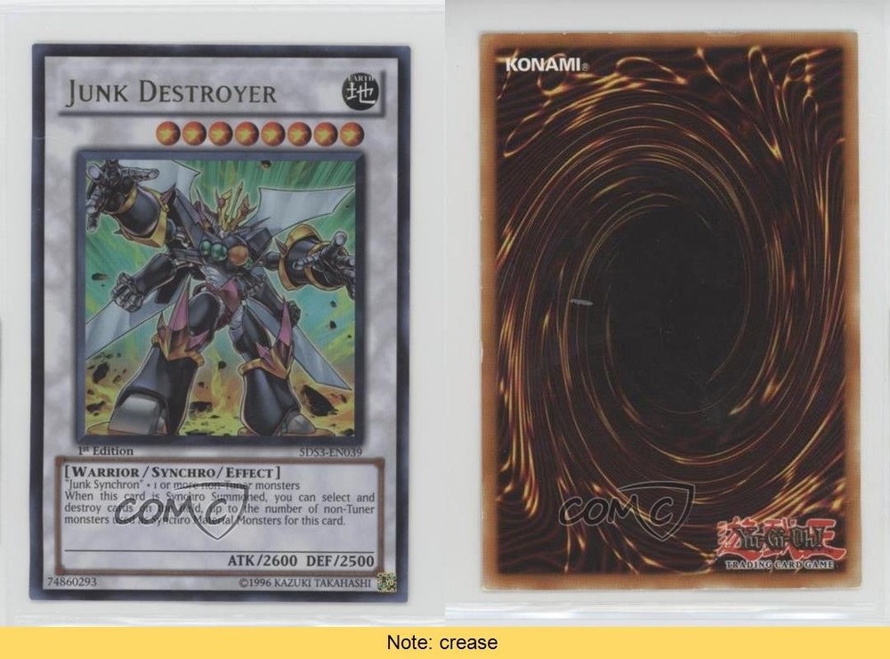 2010 Yu-Gi-Oh! 5D's Duelist Toolbox - Starter Deck [Base] - 1st Edition #5DS3-EN039 Junk Destroyer COMC Item: 32077819 CONDITION NOTE: crease - YuGiOh Card - Featuring Junk Destroyer Search for more: 2010 Yu-Gi-Oh! 5D's Duelist Toolbox Search for more: 2010 Yu-Gi-Oh! 5D's Duelist Toolbox - Starter Deck [Base] - 1st Edition View all of our Listings Auctions Buy It Now About Us Located in the beautiful Pacific Northwest, COMC (Check Out My Cards) is the world's largest consignment service for trading card singles. More than 10,000 people have used our consignment service to list over 50 million trading cards. Find out how we can help you consign your items on eBay by contacting us through eBay messaging. COMC -- "The Safe & Easy Way to Buy & Sell" Raw Condition for Modern Cards Unless otherwise noted, raw modern cards are listed in Near Mint-Mint condition or better. A NM-MT card appears to be Mint at first glance, but upon closer inspection, may exhibit some of the following: minor print defects (e.g. roller marks, print line, dimple), minor scratches, slight edge wear, and slight corner wear. Centering is clearly visible in the images provided and does not factor into our condition assessment. Raw Condition for Vintage Cards Unless otherwise noted, raw vintage cards are listed in Excellent condition or better. An EX card may exhibit some of the following: minor rounding of corners, surface wear, print defects, light scratches, and slight edge wear/chipping. Centering is clearly visible in the images provided and does not factor into our condition assessment. Domestic Shipping Combined shipping for multiple items is available. To receive combined shipping, please ensure all desired items are in your eBay shopping cart before proceeding to checkout. eBay limits orders to 40 items per order. We automatically combine multiple orders placed on the same day. If you place multiple orders on the same day, please contact us to request a refund of applicable shipping costs. Signature confirmation may be required on invoices over $400. All cards are protected and shipped securely. International Shipping COMC offers eBay's International Shipping (EIS) for international orders under $2,500* (see country exceptions below). All duties and import fees are paid at checkout; in the rare event that there are additional import fees upon delivery, these are borne by the buyer. EIS packages route through a shipping hub in Erlanger, KY before shipping to their final destination. Please note that EIS does not allow for combined shipments. The shipping rates are determined by eBay and cannot be adjusted. *Maximum sale price exceptions: Colombia, Kuwait ($2,000); Taiwan ($1,539); Chile, Costa Rica, Guatemala, Honduras, Trinidad and Tobago ($1,000); Antigua and Barbuda, Aruba, Belize, Dominica, Grenada, Philippines, Saint Kitts and Nevis, Saint Lucia, Montserrat, Turks and Caicos Islands ($500); Dominican Republic, El Salvador ($200). Please request a shipping quote through eBay messaging for orders that exceed the maximum sale price supported by eBay's International Shipping. You will be responsible for all duties and import fees for international orders shipped outside the EIS. All cards are protected and shipped securely. Payment COMC does not accept offers on our cards through our eBay storefront. COMC utilizes eBay’s managed payments system. If you are experiencing difficulties making a payment, please contact eBay for assistance. Return Policy Returns are only accepted on the rare occasion the item is not as described. If you are making a return, please initiate the return process through eBay so a mailing label can be provided for you. Prior to listing, our expert team carefully assessed this item to represent it accurately. Please review the description and high-definition images prior to purchasing to ensure this item meets your satisfaction. We welcome you to contact us if you have further questions about this item. Trust and Integrity COMC carefully assesses each item consigned to us to prevent fraudulent items from entering the marketplace. If you believe an item offered on COMC may be fraudulent, please contact us with details so we can investigate the issue. Items we determine are outside our supported items policy may be removed. Last Modified: 5/18/2025 12:42:29 AM PDT