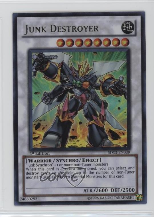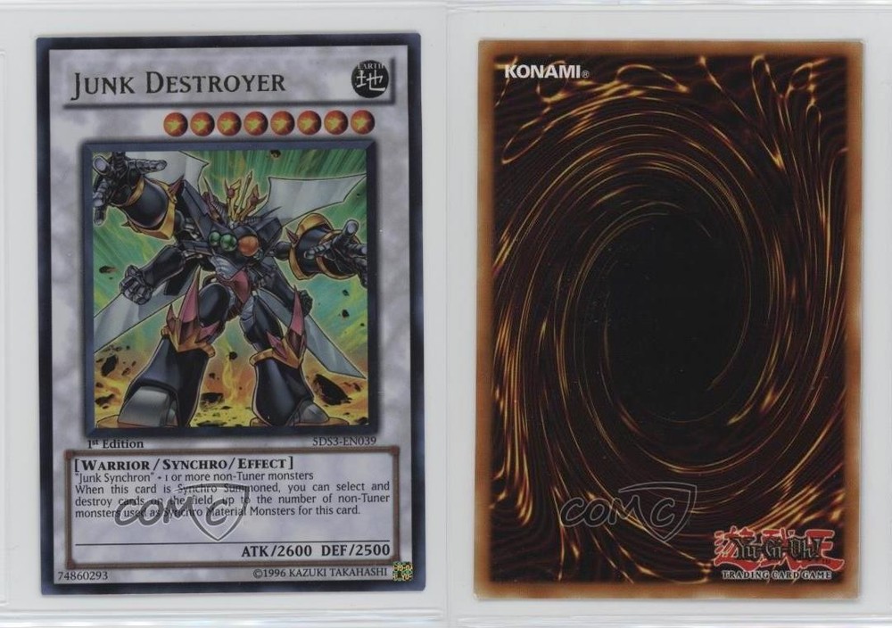 2010 Yu-Gi-Oh! 5D's Duelist Toolbox - Starter Deck [Base] - 1st Edition #5DS3-EN039 Junk Destroyer COMC Item: 212856377 - YuGiOh Card - Featuring Junk Destroyer Search for more: 2010 Yu-Gi-Oh! 5D's Duelist Toolbox Search for more: 2010 Yu-Gi-Oh! 5D's Duelist Toolbox - Starter Deck [Base] - 1st Edition View all of our Listings Auctions Buy It Now About Us Located in the beautiful Pacific Northwest, COMC (Check Out My Cards) is the world's largest consignment service for trading card singles. More than 10,000 people have used our consignment service to list over 50 million trading cards. Find out how we can help you consign your items on eBay by contacting us through eBay messaging. COMC -- "The Safe & Easy Way to Buy & Sell" Raw Condition for Modern Cards Unless otherwise noted, raw modern cards are listed in Near Mint-Mint condition or better. A NM-MT card appears to be Mint at first glance, but upon closer inspection, may exhibit some of the following: minor print defects (e.g. roller marks, print line, dimple), minor scratches, slight edge wear, and slight corner wear. Centering is clearly visible in the images provided and does not factor into our condition assessment. Raw Condition for Vintage Cards Unless otherwise noted, raw vintage cards are listed in Excellent condition or better. An EX card may exhibit some of the following: minor rounding of corners, surface wear, print defects, light scratches, and slight edge wear/chipping. Centering is clearly visible in the images provided and does not factor into our condition assessment. Domestic Shipping Combined shipping for multiple items is available. To receive combined shipping, please ensure all desired items are in your eBay shopping cart before proceeding to checkout. eBay limits orders to 40 items per order. We automatically combine multiple orders placed on the same day. If you place multiple orders on the same day, please contact us to request a refund of applicable shipping costs. Signature confirmation may be required on invoices over $400. All cards are protected and shipped securely. International Shipping COMC offers eBay's International Shipping (EIS) for international orders under $2,500* (see country exceptions below). All duties and import fees are paid at checkout; in the rare event that there are additional import fees upon delivery, these are borne by the buyer. EIS packages route through a shipping hub in Erlanger, KY before shipping to their final destination. Please note that EIS does not allow for combined shipments. The shipping rates are determined by eBay and cannot be adjusted. *Maximum sale price exceptions: Colombia, Kuwait ($2,000); Taiwan ($1,539); Chile, Costa Rica, Guatemala, Honduras, Trinidad and Tobago ($1,000); Antigua and Barbuda, Aruba, Belize, Dominica, Grenada, Philippines, Saint Kitts and Nevis, Saint Lucia, Montserrat, Turks and Caicos Islands ($500); Dominican Republic, El Salvador ($200). Please request a shipping quote through eBay messaging for orders that exceed the maximum sale price supported by eBay's International Shipping. You will be responsible for all duties and import fees for international orders shipped outside the EIS. All cards are protected and shipped securely. Payment COMC does not accept offers on our cards through our eBay storefront. COMC utilizes eBay’s managed payments system. If you are experiencing difficulties making a payment, please contact eBay for assistance. Return Policy Returns are only accepted on the rare occasion the item is not as described. If you are making a return, please initiate the return process through eBay so a mailing label can be provided for you. Prior to listing, our expert team carefully assessed this item to represent it accurately. Please review the description and high-definition images prior to purchasing to ensure this item meets your satisfaction. We welcome you to contact us if you have further questions about this item. Trust and Integrity COMC carefully assesses each item consigned to us to prevent fraudulent items from entering the marketplace. If you believe an item offered on COMC may be fraudulent, please contact us with details so we can investigate the issue. Items we determine are outside our supported items policy may be removed. Last Modified: 5/18/2025 12:42:25 AM PDT