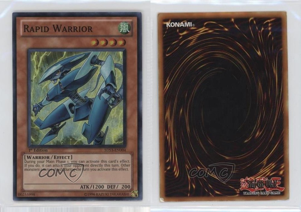 2010 Yu-Gi-Oh! 5D's Duelist Toolbox - Starter Deck [Base] - 1st Edition #5DS3-EN004 Rapid Warrior COMC Item: 172149134 - YuGiOh Card - Featuring Rapid Warrior Search for more: 2010 Yu-Gi-Oh! 5D's Duelist Toolbox Search for more: 2010 Yu-Gi-Oh! 5D's Duelist Toolbox - Starter Deck [Base] - 1st Edition View all of our Listings Auctions Buy It Now About Us Located in the beautiful Pacific Northwest, COMC (Check Out My Cards) is the world's largest consignment service for trading card singles. More than 10,000 people have used our consignment service to list over 50 million trading cards. Find out how we can help you consign your items on eBay by contacting us through eBay messaging. COMC -- "The Safe & Easy Way to Buy & Sell" Raw Condition for Modern Cards Unless otherwise noted, raw modern cards are listed in Near Mint-Mint condition or better. A NM-MT card appears to be Mint at first glance, but upon closer inspection, may exhibit some of the following: minor print defects (e.g. roller marks, print line, dimple), minor scratches, slight edge wear, and slight corner wear. Centering is clearly visible in the images provided and does not factor into our condition assessment. Raw Condition for Vintage Cards Unless otherwise noted, raw vintage cards are listed in Excellent condition or better. An EX card may exhibit some of the following: minor rounding of corners, surface wear, print defects, light scratches, and slight edge wear/chipping. Centering is clearly visible in the images provided and does not factor into our condition assessment. Domestic Shipping Combined shipping for multiple items is available. To receive combined shipping, please ensure all desired items are in your eBay shopping cart before proceeding to checkout. eBay limits orders to 40 items per order. We automatically combine multiple orders placed on the same day. If you place multiple orders on the same day, please contact us to request a refund of applicable shipping costs. Signature confirmation may be required on invoices over $400. All cards are protected and shipped securely. International Shipping COMC offers eBay's International Shipping (EIS) for international orders under $2,500* (see country exceptions below). All duties and import fees are paid at checkout; in the rare event that there are additional import fees upon delivery, these are borne by the buyer. EIS packages route through a shipping hub in Erlanger, KY before shipping to their final destination. Please note that EIS does not allow for combined shipments. The shipping rates are determined by eBay and cannot be adjusted. *Maximum sale price exceptions: Colombia, Kuwait ($2,000); Taiwan ($1,539); Chile, Costa Rica, Guatemala, Honduras, Trinidad and Tobago ($1,000); Antigua and Barbuda, Aruba, Belize, Dominica, Grenada, Philippines, Saint Kitts and Nevis, Saint Lucia, Montserrat, Turks and Caicos Islands ($500); Dominican Republic, El Salvador ($200). Please request a shipping quote through eBay messaging for orders that exceed the maximum sale price supported by eBay's International Shipping. You will be responsible for all duties and import fees for international orders shipped outside the EIS. All cards are protected and shipped securely. Payment COMC does not accept offers on our cards through our eBay storefront. COMC utilizes eBay’s managed payments system. If you are experiencing difficulties making a payment, please contact eBay for assistance. Return Policy Returns are only accepted on the rare occasion the item is not as described. If you are making a return, please initiate the return process through eBay so a mailing label can be provided for you. Prior to listing, our expert team carefully assessed this item to represent it accurately. Please review the description and high-definition images prior to purchasing to ensure this item meets your satisfaction. We welcome you to contact us if you have further questions about this item. Trust and Integrity COMC carefully assesses each item consigned to us to prevent fraudulent items from entering the marketplace. If you believe an item offered on COMC may be fraudulent, please contact us with details so we can investigate the issue. Items we determine are outside our supported items policy may be removed. Last Modified: 6/19/2025 9:08:22 AM PDT