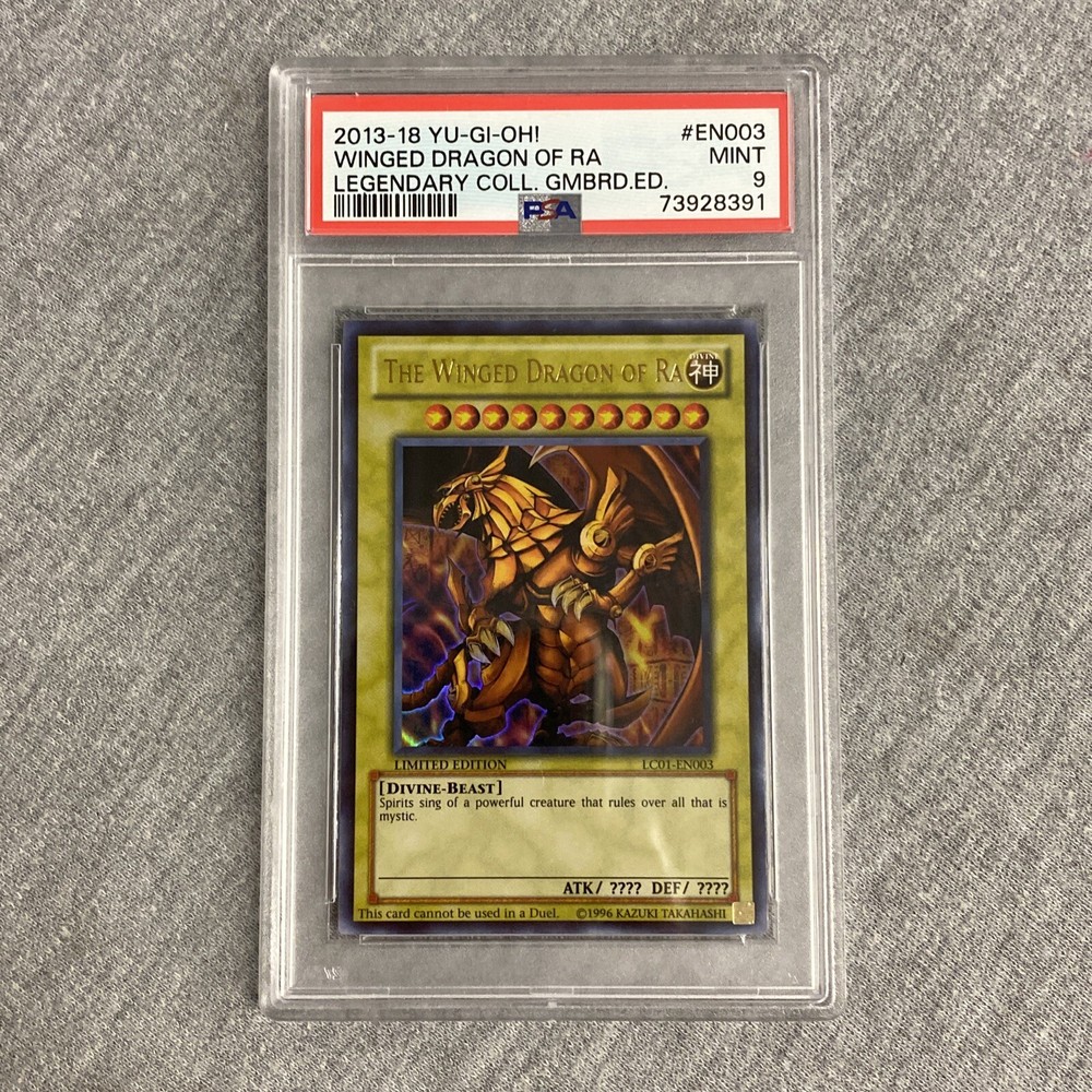 2013 Yu-Gi-Oh! The Winged Dragon of Ra LC01-EN003 Ultra Rare PSA 9 Item Details A picture says a thousand words, please refer to pictures for full condition and specific item details. Please note that you are purchasing the exact contents pictured and only what is pictured. If it is not pictured, then it is not included in this listing. Assume major cosmetic wear; scratches, chips, cuts, cracks, dents, and dings on any part of any item that is not pictured. It is your responsibility as the buyer to obtain any information prior to completing your purchase. If you have any questions or concerns, please ask and we will respond as soon as possible. Best offers will not be considered if sent through an eBay message. Remember we are human, and errors do happen, we are here to provide the best experience and are willing to help where we can. Please understand that all issues that may arise or you are experiencing will be handled according within normal business hours. Any requests made after an item is purchased will be decided upon by our discretion, we reserve the right to cancel any order. Shipping Please note that items are shipped Monday-Friday. All items will be shipped the most cost-efficient way via USPS, FedEx, or UPS. Please note that we only offer free shipping to the 48 continental states. We do not ship directly to Alaska, Hawaii, APO, FPO, or PO boxes. Any purchase with the use of a restricted shipping address will be cancelled. Shipping address cannot be altered after purchase as per eBay policy. All international items will be shipped using the Global Shipping Program Only. Local pick up is not offered for any listing. Please contact us before completing purchase if you have any special requests or concerns, we are willing to complete the necessary accommodations within the best of our abilities. Returns Please note that returns are to be handled directly according to the selected return policy. Any new, sealed, unopened, or items altered in any way are not eligible for return. All returns are subjected to a 20% restocking fee, where applicable. Return shipping cost is the buyers responsibility.