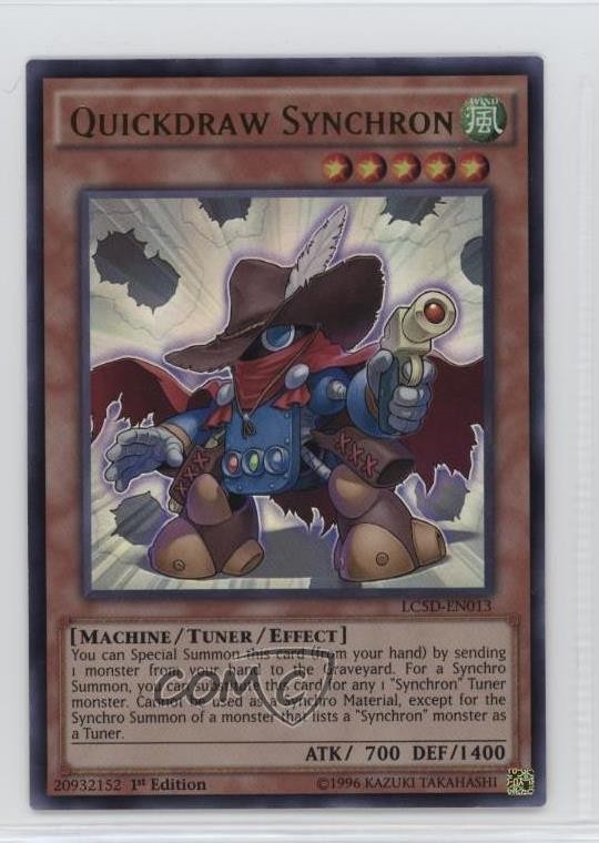 2014 Yu-Gi-Oh! Legendary Collection 5Ds - Mega-Pack [Base] - 1st Edition #LC5D-EN013 UR - Quickdraw Synchron COMC Item: 172356551 - YuGiOh Card - Featuring Quickdraw Synchron Search for more: 2014 Yu-Gi-Oh! Legendary Collection 5Ds Search for more: 2014 Yu-Gi-Oh! Legendary Collection 5Ds - Mega-Pack [Base] - 1st Edition View all of our Listings Auctions Buy It Now About Us Located in the beautiful Pacific Northwest, COMC (Check Out My Cards) is the world's largest consignment service for trading card singles. More than 10,000 people have used our consignment service to list over 50 million trading cards. Find out how we can help you consign your items on eBay by contacting us through eBay messaging. COMC -- "The Safe & Easy Way to Buy & Sell" Raw Condition for Modern Cards Unless otherwise noted, raw modern cards are listed in Near Mint-Mint condition or better. A NM-MT card appears to be Mint at first glance, but upon closer inspection, may exhibit some of the following: minor print defects (e.g. roller marks, print line, dimple), minor scratches, slight edge wear, and slight corner wear. Centering is clearly visible in the images provided and does not factor into our condition assessment. Raw Condition for Vintage Cards Unless otherwise noted, raw vintage cards are listed in Excellent condition or better. An EX card may exhibit some of the following: minor rounding of corners, surface wear, print defects, light scratches, and slight edge wear/chipping. Centering is clearly visible in the images provided and does not factor into our condition assessment. Domestic Shipping Combined shipping for multiple items is available. To receive combined shipping, please ensure all desired items are in your eBay shopping cart before proceeding to checkout. eBay limits orders to 40 items per order. We automatically combine multiple orders placed on the same day. If you place multiple orders on the same day, please contact us to request a refund of applicable shipping costs. Signature confirmation may be required on invoices over $400. All cards are protected and shipped securely. International Shipping COMC offers eBay's International Shipping (EIS) for international orders under $2,500* (see country exceptions below). All duties and import fees are paid at checkout; in the rare event that there are additional import fees upon delivery, these are borne by the buyer. EIS packages route through a shipping hub in Erlanger, KY before shipping to their final destination. Please note that EIS does not allow for combined shipments. The shipping rates are determined by eBay and cannot be adjusted. *Maximum sale price exceptions: Colombia, Kuwait ($2,000); Taiwan ($1,539); Chile, Costa Rica, Guatemala, Honduras, Trinidad and Tobago ($1,000); Antigua and Barbuda, Aruba, Belize, Dominica, Grenada, Philippines, Saint Kitts and Nevis, Saint Lucia, Montserrat, Turks and Caicos Islands ($500); Dominican Republic, El Salvador ($200). Please request a shipping quote through eBay messaging for orders that exceed the maximum sale price supported by eBay's International Shipping. You will be responsible for all duties and import fees for international orders shipped outside the EIS. All cards are protected and shipped securely. Payment COMC does not accept offers on our cards through our eBay storefront. COMC utilizes eBay’s managed payments system. If you are experiencing difficulties making a payment, please contact eBay for assistance. Return Policy Returns are only accepted on the rare occasion the item is not as described. If you are making a return, please initiate the return process through eBay so a mailing label can be provided for you. Prior to listing, our expert team carefully assessed this item to represent it accurately. Please review the description and high-definition images prior to purchasing to ensure this item meets your satisfaction. We welcome you to contact us if you have further questions about this item. Trust and Integrity COMC carefully assesses each item consigned to us to prevent fraudulent items from entering the marketplace. If you believe an item offered on COMC may be fraudulent, please contact us with details so we can investigate the issue. Items we determine are outside our supported items policy may be removed. Last Modified: 7/26/2025 5:27:48 AM PDT