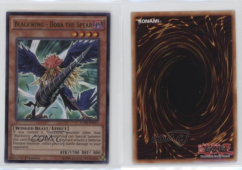 2014 Yu-Gi-Oh! Legendary Collection 5Ds - Mega-Pack [Base] - 1st Edition #LC5D-EN111 UR - Blackwing - Bora the Spear COMC Item: 161516017 - YuGiOh Card - Featuring Blackwing - Bora the Spear Search for more: 2014 Yu-Gi-Oh! Legendary Collection 5Ds Search for more: 2014 Yu-Gi-Oh! Legendary Collection 5Ds - Mega-Pack [Base] - 1st Edition View all of our Listings Auctions Buy It Now About Us Located in the beautiful Pacific Northwest, COMC (Check Out My Cards) is the world's largest consignment service for trading card singles. More than 10,000 people have used our consignment service to list over 50 million trading cards. Find out how we can help you consign your items on eBay by contacting us through eBay messaging. COMC -- "The Safe & Easy Way to Buy & Sell" Raw Condition for Modern Cards Unless otherwise noted, raw modern cards are listed in Near Mint-Mint condition or better. A NM-MT card appears to be Mint at first glance, but upon closer inspection, may exhibit some of the following: minor print defects (e.g. roller marks, print line, dimple), minor scratches, slight edge wear, and slight corner wear. Centering is clearly visible in the images provided and does not factor into our condition assessment. Raw Condition for Vintage Cards Unless otherwise noted, raw vintage cards are listed in Excellent condition or better. An EX card may exhibit some of the following: minor rounding of corners, surface wear, print defects, light scratches, and slight edge wear/chipping. Centering is clearly visible in the images provided and does not factor into our condition assessment. Domestic Shipping Combined shipping for multiple items is available. To receive combined shipping, please ensure all desired items are in your eBay shopping cart before proceeding to checkout. eBay limits orders to 40 items per order. We automatically combine multiple orders placed on the same day. If you place multiple orders on the same day, please contact us to request a refund of applicable shipping costs. Signature confirmation may be required on invoices over $400. All cards are protected and shipped securely. International Shipping COMC offers eBay's International Shipping (EIS) for international orders under $2,500* (see country exceptions below). All duties and import fees are paid at checkout; in the rare event that there are additional import fees upon delivery, these are borne by the buyer. EIS packages route through a shipping hub in Erlanger, KY before shipping to their final destination. Please note that EIS does not allow for combined shipments. The shipping rates are determined by eBay and cannot be adjusted. *Maximum sale price exceptions: Colombia, Kuwait ($2,000); Taiwan ($1,539); Chile, Costa Rica, Guatemala, Honduras, Trinidad and Tobago ($1,000); Antigua and Barbuda, Aruba, Belize, Dominica, Grenada, Philippines, Saint Kitts and Nevis, Saint Lucia, Montserrat, Turks and Caicos Islands ($500); Dominican Republic, El Salvador ($200). Please request a shipping quote through eBay messaging for orders that exceed the maximum sale price supported by eBay's International Shipping. You will be responsible for all duties and import fees for international orders shipped outside the EIS. All cards are protected and shipped securely. Payment COMC does not accept offers on our cards through our eBay storefront. COMC utilizes eBay’s managed payments system. If you are experiencing difficulties making a payment, please contact eBay for assistance. Return Policy Returns are only accepted on the rare occasion the item is not as described. If you are making a return, please initiate the return process through eBay so a mailing label can be provided for you. Prior to listing, our expert team carefully assessed this item to represent it accurately. Please review the description and high-definition images prior to purchasing to ensure this item meets your satisfaction. We welcome you to contact us if you have further questions about this item. Trust and Integrity COMC carefully assesses each item consigned to us to prevent fraudulent items from entering the marketplace. If you believe an item offered on COMC may be fraudulent, please contact us with details so we can investigate the issue. Items we determine are outside our supported items policy may be removed. Last Modified: 5/26/2025 8:34:23 PM PDT