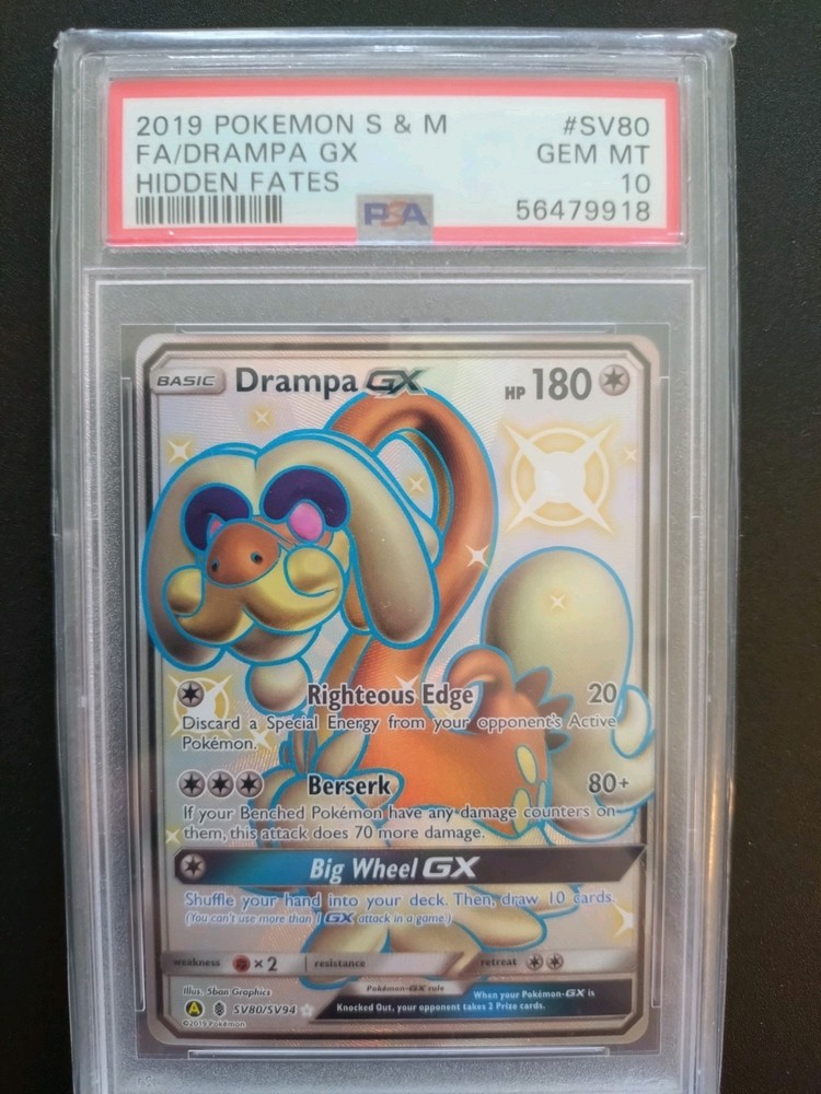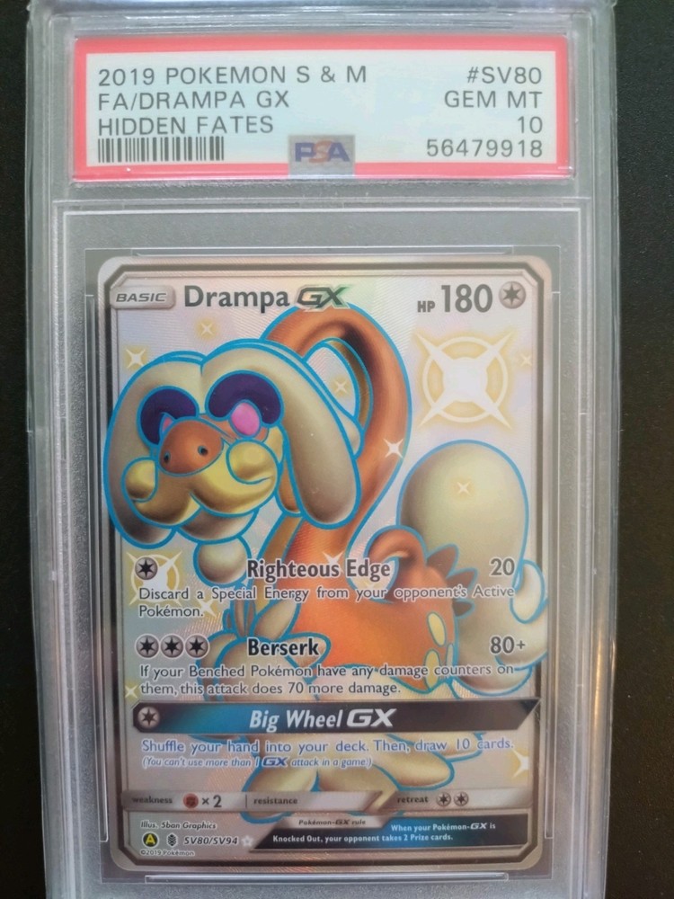 2019 Pokemon Sun & Moon Hidden Fates Secret Rare DRAMPA GX #SV80 PSA 10