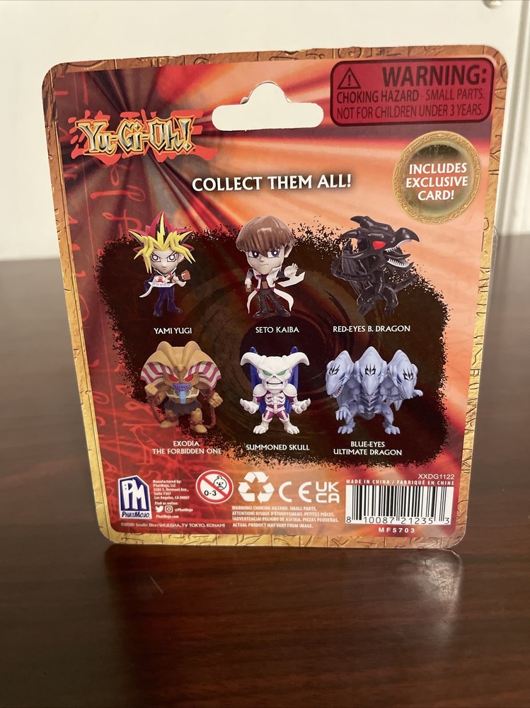 This Yu-Gi-Oh! action figure is a must-have for any fan of the franchise. The figure depicts Yami Yugi alongside iconic characters such as Red Eyes Dragon, Exodia, Blue Eyes Dragon, and Seto Kaiba. It is made of vinyl plastic and stands 3 inches tall, perfect for display on a desk or shelf. The figure is part of the 2020 Series 1 PhatMojo collection and comes with an exclusive card of Summoned Skull. This original and licensed reproduction is manufactured in China and is a great addition to any Yu-Gi-Oh! collection.