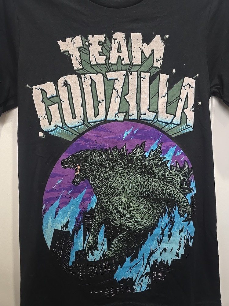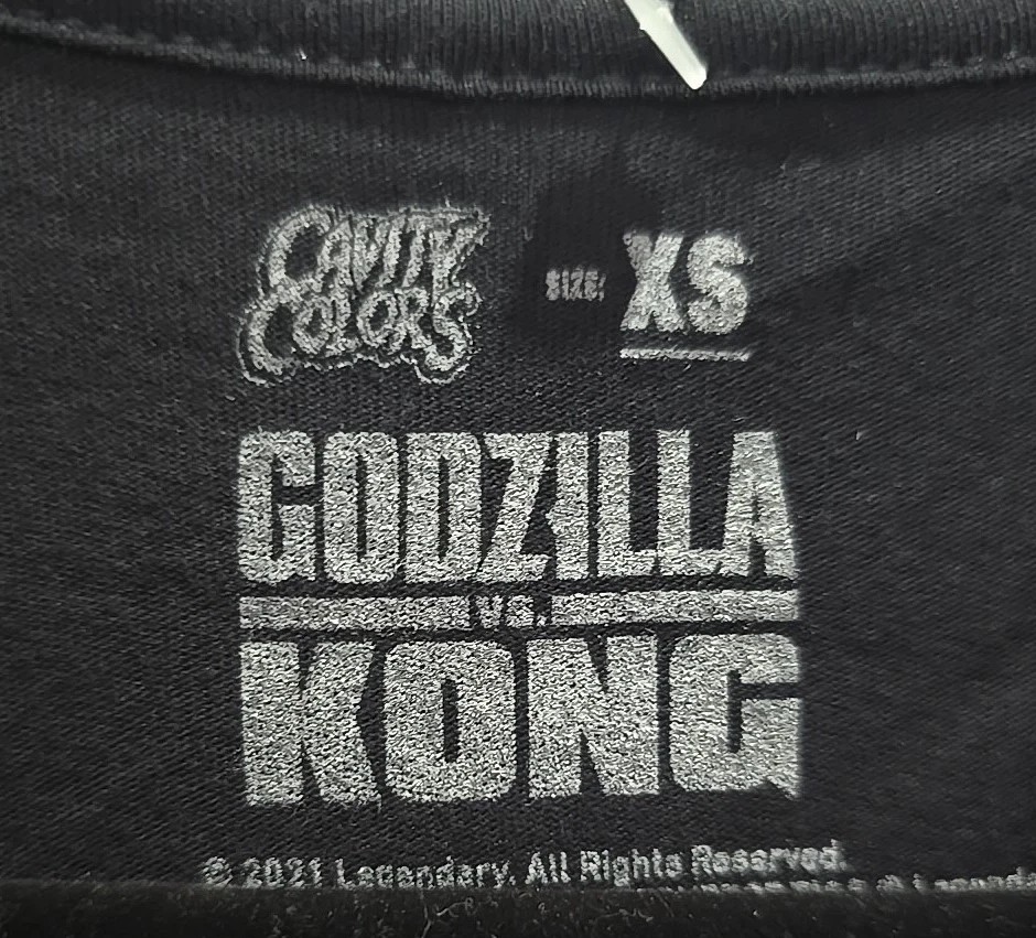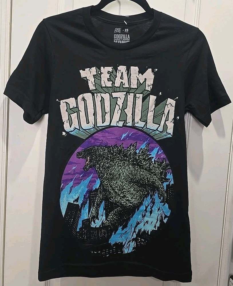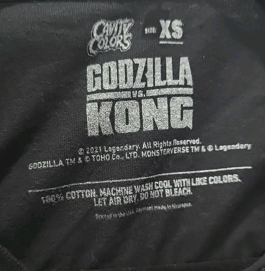 16 inch pit to pit 23 in neck to waist Show off your love for Godzilla with this 2021 Team Godzilla T-Shirt from Cavity Colors. This black cotton shirt features a colorful graphic of Godzilla vs Kong on the front, and the words "Team Godzilla" in white letters. The shirt has short sleeves and a crew neck, making it perfect for all seasons. With a regular fit and size XS, this shirt is perfect for any unisex adult fan of the Godzilla franchise. Made in the United States, this shirt is a must-have for any collector or enthusiast. Get yours now and add it to your collection!