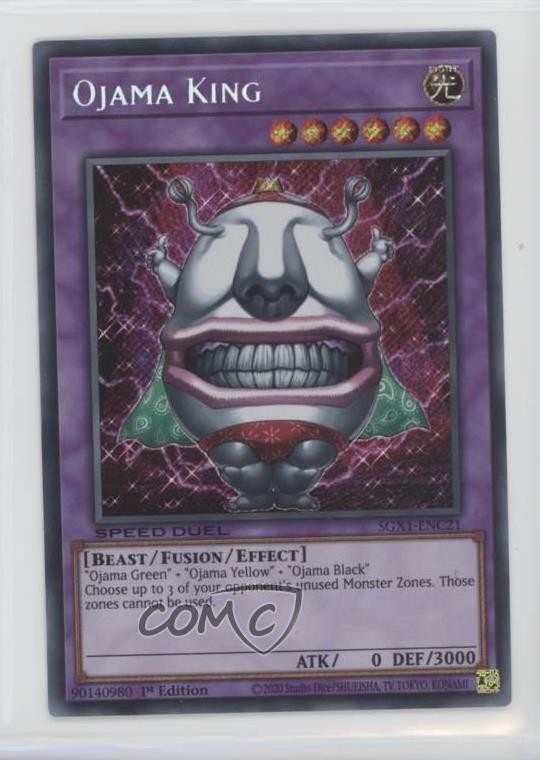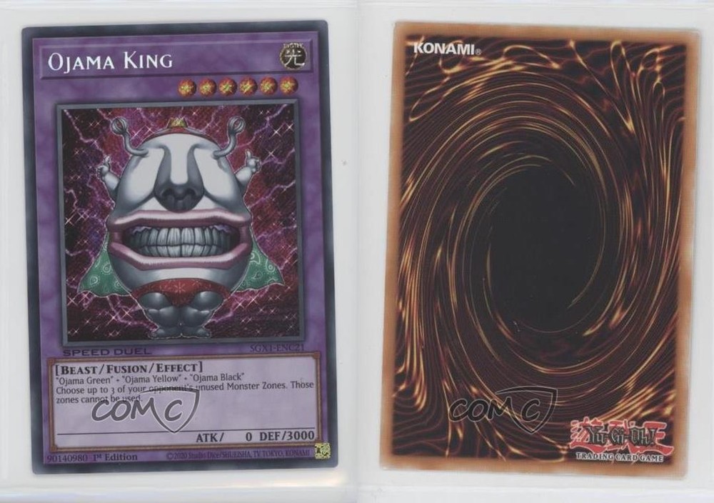 2022 Yu-Gi-Oh! Speed Duel GX: Duel Academy Box - [Base] - 1st Edition #SGX1-ENC21 Ojama King COMC Item: 125112135 - YuGiOh Card - Featuring Ojama King Search for more: 2022 Yu-Gi-Oh! Speed Duel GX: Duel Academy Box Search for more: 2022 Yu-Gi-Oh! Speed Duel GX: Duel Academy Box - [Base] - 1st Edition View all of our Listings Auctions Buy It Now About Us Located in the beautiful Pacific Northwest, COMC (Check Out My Cards) is the world's largest consignment service for trading card singles. More than 10,000 people have used our consignment service to list over 50 million trading cards. Find out how we can help you consign your items on eBay by contacting us through eBay messaging. COMC -- "The Safe & Easy Way to Buy & Sell" Raw Condition for Modern Cards Unless otherwise noted, raw modern cards are listed in Near Mint-Mint condition or better. A NM-MT card appears to be Mint at first glance, but upon closer inspection, may exhibit some of the following: minor print defects (e.g. roller marks, print line, dimple), minor scratches, slight edge wear, and slight corner wear. Centering is clearly visible in the images provided and does not factor into our condition assessment. Raw Condition for Vintage Cards Unless otherwise noted, raw vintage cards are listed in Excellent condition or better. An EX card may exhibit some of the following: minor rounding of corners, surface wear, print defects, light scratches, and slight edge wear/chipping. Centering is clearly visible in the images provided and does not factor into our condition assessment. Domestic Shipping Combined shipping for multiple items is available. To receive combined shipping, please ensure all desired items are in your eBay shopping cart before proceeding to checkout. eBay limits orders to 40 items per order. We automatically combine multiple orders placed on the same day. If you place multiple orders on the same day, please contact us to request a refund of applicable shipping costs. Signature confirmation may be required on invoices over $400. All cards are protected and shipped securely. International Shipping COMC offers eBay's International Shipping (EIS) for international orders under $2,500* (see country exceptions below). All duties and import fees are paid at checkout; in the rare event that there are additional import fees upon delivery, these are borne by the buyer. EIS packages route through a shipping hub in Erlanger, KY before shipping to their final destination. Please note that EIS does not allow for combined shipments. The shipping rates are determined by eBay and cannot be adjusted. *Maximum sale price exceptions: Colombia, Kuwait ($2,000); Taiwan ($1,539); Chile, Costa Rica, Guatemala, Honduras, Trinidad and Tobago ($1,000); Antigua and Barbuda, Aruba, Belize, Dominica, Grenada, Philippines, Saint Kitts and Nevis, Saint Lucia, Montserrat, Turks and Caicos Islands ($500); Dominican Republic, El Salvador ($200). Please request a shipping quote through eBay messaging for orders that exceed the maximum sale price supported by eBay's International Shipping. You will be responsible for all duties and import fees for international orders shipped outside the EIS. All cards are protected and shipped securely. Payment COMC does not accept offers on our cards through our eBay storefront. COMC utilizes eBay’s managed payments system. If you are experiencing difficulties making a payment, please contact eBay for assistance. Return Policy Returns are only accepted on the rare occasion the item is not as described. If you are making a return, please initiate the return process through eBay so a mailing label can be provided for you. Prior to listing, our expert team carefully assessed this item to represent it accurately. Please review the description and high-definition images prior to purchasing to ensure this item meets your satisfaction. We welcome you to contact us if you have further questions about this item. Trust and Integrity COMC carefully assesses each item consigned to us to prevent fraudulent items from entering the marketplace. If you believe an item offered on COMC may be fraudulent, please contact us with details so we can investigate the issue. Items we determine are outside our supported items policy may be removed. Last Modified: 6/24/2025 3:12:39 PM PDT