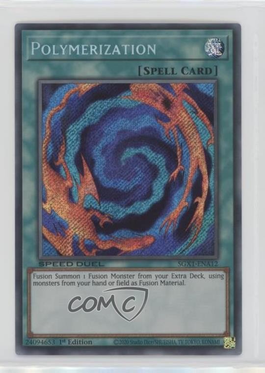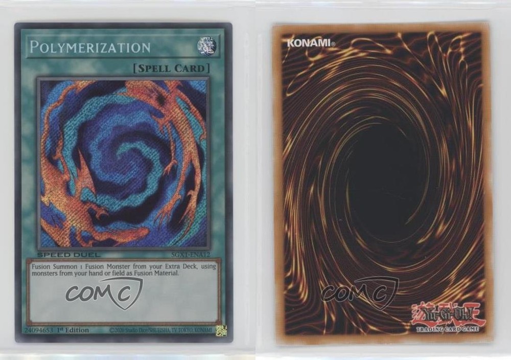 2022 Yu-Gi-Oh! Speed Duel GX: Duel Academy Box - [Base] - 1st Edition #SGX1-ENA12 SCR - Polymerization COMC Item: 139530750 - YuGiOh Card - Featuring Polymerization Search for more: 2022 Yu-Gi-Oh! Speed Duel GX: Duel Academy Box Search for more: 2022 Yu-Gi-Oh! Speed Duel GX: Duel Academy Box - [Base] - 1st Edition View all of our Listings Auctions Buy It Now About Us Located in the beautiful Pacific Northwest, COMC (Check Out My Cards) is the world's largest consignment service for trading card singles. More than 10,000 people have used our consignment service to list over 50 million trading cards. Find out how we can help you consign your items on eBay by contacting us through eBay messaging. COMC -- "The Safe & Easy Way to Buy & Sell" Raw Condition for Modern Cards Unless otherwise noted, raw modern cards are listed in Near Mint-Mint condition or better. A NM-MT card appears to be Mint at first glance, but upon closer inspection, may exhibit some of the following: minor print defects (e.g. roller marks, print line, dimple), minor scratches, slight edge wear, and slight corner wear. Centering is clearly visible in the images provided and does not factor into our condition assessment. Raw Condition for Vintage Cards Unless otherwise noted, raw vintage cards are listed in Excellent condition or better. An EX card may exhibit some of the following: minor rounding of corners, surface wear, print defects, light scratches, and slight edge wear/chipping. Centering is clearly visible in the images provided and does not factor into our condition assessment. Domestic Shipping Combined shipping for multiple items is available. To receive combined shipping, please ensure all desired items are in your eBay shopping cart before proceeding to checkout. eBay limits orders to 40 items per order. We automatically combine multiple orders placed on the same day. If you place multiple orders on the same day, please contact us to request a refund of applicable shipping costs. Signature confirmation may be required on invoices over $400. All cards are protected and shipped securely. International Shipping COMC offers eBay's International Shipping (EIS) for international orders under $2,500* (see country exceptions below). All duties and import fees are paid at checkout; in the rare event that there are additional import fees upon delivery, these are borne by the buyer. EIS packages route through a shipping hub in Erlanger, KY before shipping to their final destination. Please note that EIS does not allow for combined shipments. The shipping rates are determined by eBay and cannot be adjusted. *Maximum sale price exceptions: Colombia, Kuwait ($2,000); Taiwan ($1,539); Chile, Costa Rica, Guatemala, Honduras, Trinidad and Tobago ($1,000); Antigua and Barbuda, Aruba, Belize, Dominica, Grenada, Philippines, Saint Kitts and Nevis, Saint Lucia, Montserrat, Turks and Caicos Islands ($500); Dominican Republic, El Salvador ($200). Please request a shipping quote through eBay messaging for orders that exceed the maximum sale price supported by eBay's International Shipping. You will be responsible for all duties and import fees for international orders shipped outside the EIS. All cards are protected and shipped securely. Payment COMC does not accept offers on our cards through our eBay storefront. COMC utilizes eBay’s managed payments system. If you are experiencing difficulties making a payment, please contact eBay for assistance. Return Policy Returns are only accepted on the rare occasion the item is not as described. If you are making a return, please initiate the return process through eBay so a mailing label can be provided for you. Prior to listing, our expert team carefully assessed this item to represent it accurately. Please review the description and high-definition images prior to purchasing to ensure this item meets your satisfaction. We welcome you to contact us if you have further questions about this item. Trust and Integrity COMC carefully assesses each item consigned to us to prevent fraudulent items from entering the marketplace. If you believe an item offered on COMC may be fraudulent, please contact us with details so we can investigate the issue. Items we determine are outside our supported items policy may be removed. Last Modified: 6/24/2025 3:05:19 PM PDT