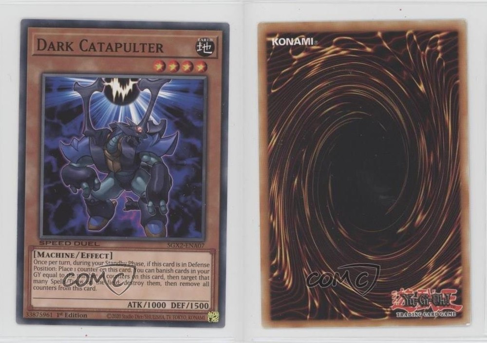 2022 Yu-Gi-Oh! Speed Duel GX: Midterm Paradox - [Base] - 1st Edition #SGX2-ENA07 Dark Catapulter COMC Item: 177000689 - YuGiOh Card - Featuring Dark Catapulter Search for more: 2022 Yu-Gi-Oh! Speed Duel GX: Midterm Paradox Search for more: 2022 Yu-Gi-Oh! Speed Duel GX: Midterm Paradox - [Base] - 1st Edition View all of our Listings Auctions Buy It Now About Us Located in the beautiful Pacific Northwest, COMC (Check Out My Cards) is the world's largest consignment service for trading card singles. More than 10,000 people have used our consignment service to list over 50 million trading cards. Find out how we can help you consign your items on eBay by contacting us through eBay messaging. COMC -- "The Safe & Easy Way to Buy & Sell" Raw Condition for Modern Cards Unless otherwise noted, raw modern cards are listed in Near Mint-Mint condition or better. A NM-MT card appears to be Mint at first glance, but upon closer inspection, may exhibit some of the following: minor print defects (e.g. roller marks, print line, dimple), minor scratches, slight edge wear, and slight corner wear. Centering is clearly visible in the images provided and does not factor into our condition assessment. Raw Condition for Vintage Cards Unless otherwise noted, raw vintage cards are listed in Excellent condition or better. An EX card may exhibit some of the following: minor rounding of corners, surface wear, print defects, light scratches, and slight edge wear/chipping. Centering is clearly visible in the images provided and does not factor into our condition assessment. Domestic Shipping Combined shipping for multiple items is available. To receive combined shipping, please ensure all desired items are in your eBay shopping cart before proceeding to checkout. eBay limits orders to 40 items per order. We automatically combine multiple orders placed on the same day. If you place multiple orders on the same day, please contact us to request a refund of applicable shipping costs. Signature confirmation may be required on invoices over $400. All cards are protected and shipped securely. International Shipping COMC offers eBay's International Shipping (EIS) for international orders under $2,500* (see country exceptions below). All duties and import fees are paid at checkout; in the rare event that there are additional import fees upon delivery, these are borne by the buyer. EIS packages route through a shipping hub in Erlanger, KY before shipping to their final destination. Please note that EIS does not allow for combined shipments. The shipping rates are determined by eBay and cannot be adjusted. *Maximum sale price exceptions: Colombia, Kuwait ($2,000); Taiwan ($1,539); Chile, Costa Rica, Guatemala, Honduras, Trinidad and Tobago ($1,000); Antigua and Barbuda, Aruba, Belize, Dominica, Grenada, Philippines, Saint Kitts and Nevis, Saint Lucia, Montserrat, Turks and Caicos Islands ($500); Dominican Republic, El Salvador ($200). Please request a shipping quote through eBay messaging for orders that exceed the maximum sale price supported by eBay's International Shipping. You will be responsible for all duties and import fees for international orders shipped outside the EIS. All cards are protected and shipped securely. Payment COMC does not accept offers on our cards through our eBay storefront. COMC utilizes eBay’s managed payments system. If you are experiencing difficulties making a payment, please contact eBay for assistance. Return Policy Returns are only accepted on the rare occasion the item is not as described. If you are making a return, please initiate the return process through eBay so a mailing label can be provided for you. Prior to listing, our expert team carefully assessed this item to represent it accurately. Please review the description and high-definition images prior to purchasing to ensure this item meets your satisfaction. We welcome you to contact us if you have further questions about this item. Trust and Integrity COMC carefully assesses each item consigned to us to prevent fraudulent items from entering the marketplace. If you believe an item offered on COMC may be fraudulent, please contact us with details so we can investigate the issue. Items we determine are outside our supported items policy may be removed. Last Modified: 5/24/2025 11:17:28 PM PDT