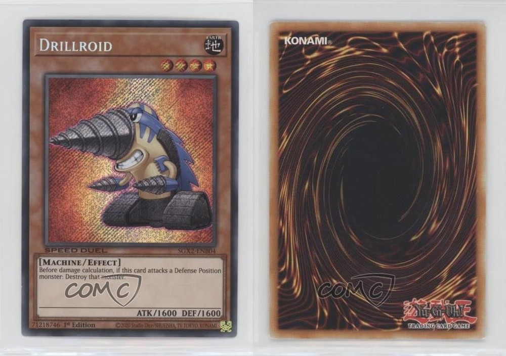 2022 Yu-Gi-Oh! Speed Duel GX: Midterm Paradox - [Base] - 1st Edition #SGX2-ENB04 SE - Drillroid COMC Item: 161681395 - YuGiOh Card - Featuring Drillroid Search for more: 2022 Yu-Gi-Oh! Speed Duel GX: Midterm Paradox Search for more: 2022 Yu-Gi-Oh! Speed Duel GX: Midterm Paradox - [Base] - 1st Edition View all of our Listings Auctions Buy It Now About Us Located in the beautiful Pacific Northwest, COMC (Check Out My Cards) is the world's largest consignment service for trading card singles. More than 10,000 people have used our consignment service to list over 50 million trading cards. Find out how we can help you consign your items on eBay by contacting us through eBay messaging. COMC -- "The Safe & Easy Way to Buy & Sell" Raw Condition for Modern Cards Unless otherwise noted, raw modern cards are listed in Near Mint-Mint condition or better. A NM-MT card appears to be Mint at first glance, but upon closer inspection, may exhibit some of the following: minor print defects (e.g. roller marks, print line, dimple), minor scratches, slight edge wear, and slight corner wear. Centering is clearly visible in the images provided and does not factor into our condition assessment. Raw Condition for Vintage Cards Unless otherwise noted, raw vintage cards are listed in Excellent condition or better. An EX card may exhibit some of the following: minor rounding of corners, surface wear, print defects, light scratches, and slight edge wear/chipping. Centering is clearly visible in the images provided and does not factor into our condition assessment. Domestic Shipping Combined shipping for multiple items is available. To receive combined shipping, please ensure all desired items are in your eBay shopping cart before proceeding to checkout. eBay limits orders to 40 items per order. We automatically combine multiple orders placed on the same day. If you place multiple orders on the same day, please contact us to request a refund of applicable shipping costs. Signature confirmation may be required on invoices over $400. All cards are protected and shipped securely. International Shipping COMC offers eBay's International Shipping (EIS) for international orders under $2,500* (see country exceptions below). All duties and import fees are paid at checkout; in the rare event that there are additional import fees upon delivery, these are borne by the buyer. EIS packages route through a shipping hub in Erlanger, KY before shipping to their final destination. Please note that EIS does not allow for combined shipments. The shipping rates are determined by eBay and cannot be adjusted. *Maximum sale price exceptions: Colombia, Kuwait ($2,000); Taiwan ($1,539); Chile, Costa Rica, Guatemala, Honduras, Trinidad and Tobago ($1,000); Antigua and Barbuda, Aruba, Belize, Dominica, Grenada, Philippines, Saint Kitts and Nevis, Saint Lucia, Montserrat, Turks and Caicos Islands ($500); Dominican Republic, El Salvador ($200). Please request a shipping quote through eBay messaging for orders that exceed the maximum sale price supported by eBay's International Shipping. You will be responsible for all duties and import fees for international orders shipped outside the EIS. All cards are protected and shipped securely. Payment COMC does not accept offers on our cards through our eBay storefront. COMC utilizes eBay’s managed payments system. If you are experiencing difficulties making a payment, please contact eBay for assistance. Return Policy Returns are only accepted on the rare occasion the item is not as described. If you are making a return, please initiate the return process through eBay so a mailing label can be provided for you. Prior to listing, our expert team carefully assessed this item to represent it accurately. Please review the description and high-definition images prior to purchasing to ensure this item meets your satisfaction. We welcome you to contact us if you have further questions about this item. Trust and Integrity COMC carefully assesses each item consigned to us to prevent fraudulent items from entering the marketplace. If you believe an item offered on COMC may be fraudulent, please contact us with details so we can investigate the issue. Items we determine are outside our supported items policy may be removed. Last Modified: 6/13/2025 3:58:47 PM PDT