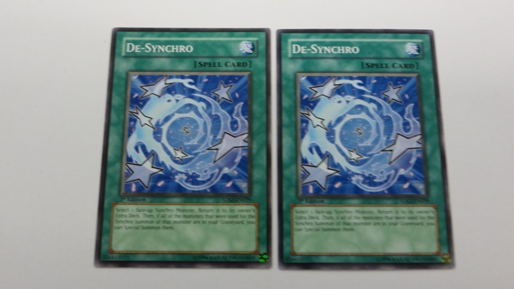 Welcome to Great_Deals_On_Collectibles.We are in the retail hobby sector and have been since 1991.We sell sportscards,gaming cards,comic books,action figures,plush toys and various other hobby related items.We have been on Ebay since 1999.We try to make buyers experience on EBAY as satisfying as possible.Our feedback on Ebay speaks volumes.Every item we have up for auction is LIVE and ready to be shipped upon payment. If you have any questions feel free to contact us,thanks for showing interest. YUGIOH You are bidding on 2x DE-SYNCHRO 5DS2-EN029 SPELL CARD 1ST EDITION COMMON YUGIOH NM UNPLAYED