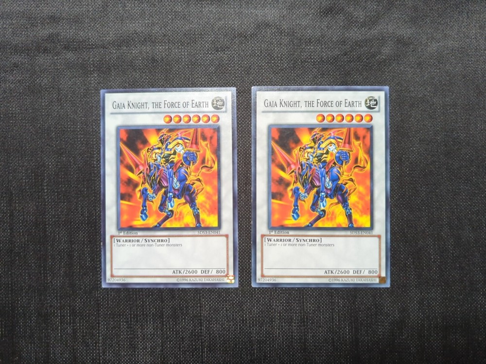 * 2x - Gaia Knight, the Force of the Earth - 5DS3-EN041 - Common - 1st Ed - LP. Condition is Ungraded. Shipped with eBay Standard Envelope for Trading Cards, Stamps, Postcards & Coins up to $20....