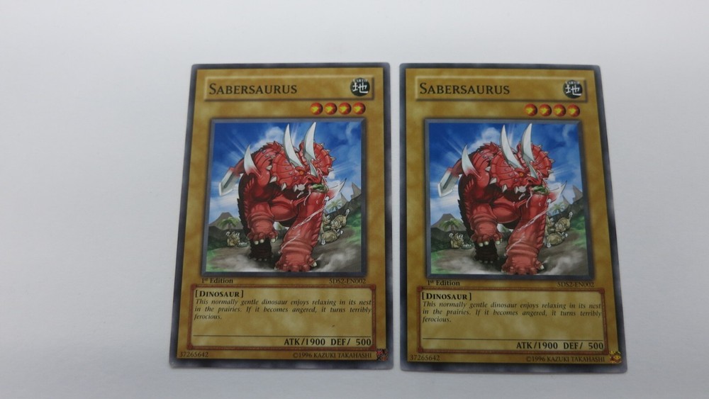 Welcome to Great_Deals_On_Collectibles.We are in the retail hobby sector and have been since 1991.We sell sportscards,gaming cards,comic books,action figures,plush toys and various other hobby related items.We have been on Ebay since 1999.We try to make buyers experience on EBAY as satisfying as possible.Our feedback on Ebay speaks volumes.Every item we have up for auction is LIVE and ready to be shipped upon payment. If you have any questions feel free to contact us,thanks for showing interest. YUGIOH You are bidding on 2x SABERSAURUS MONSTER 5DS2-EN002 1ST EDITION COMMON YUGIOH NM / UNPLAYED