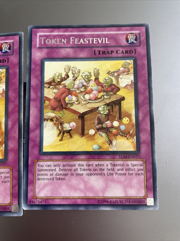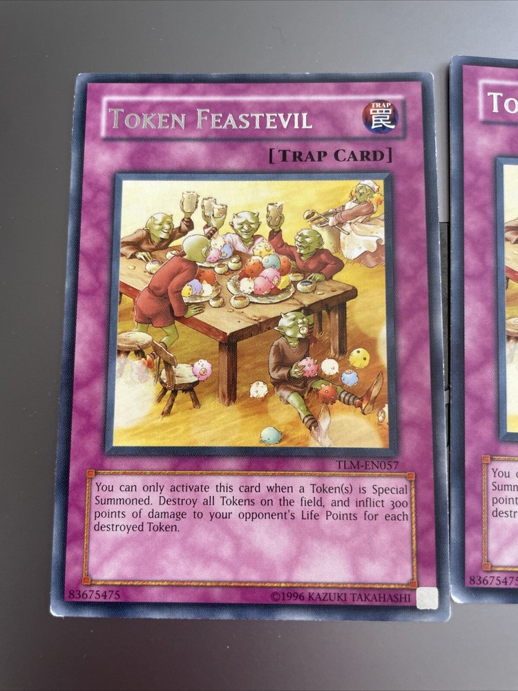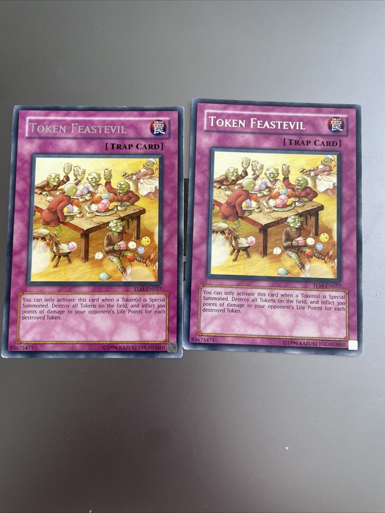 This is for 2x rare and unlimited edition Yu-Gi-Oh! card from the Booster Set Cards (GX) set. The card name is Token Feastevil. This card is perfect for collectors and players alike who are looking to add a unique and rare card to their collection. It is a must-have for any Yu-Gi-Oh! fan and is sure to impress. Don't miss out on the chance to own this amazing card!
