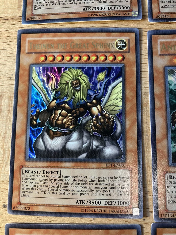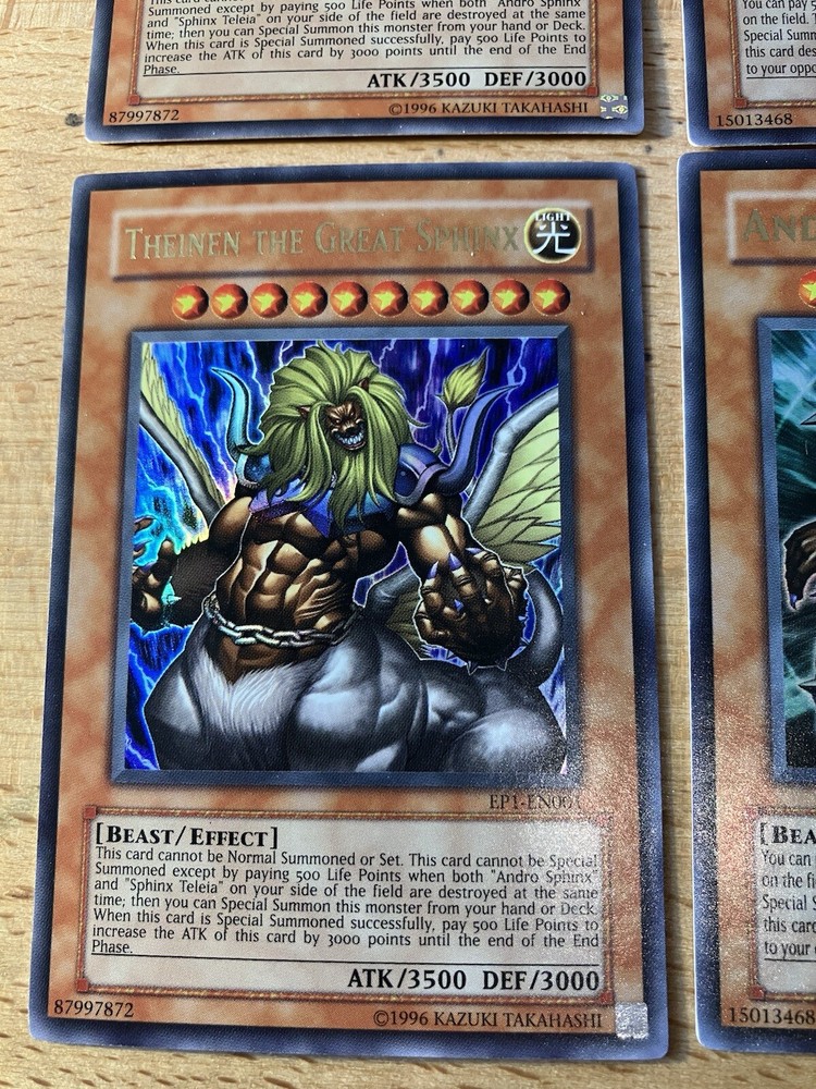 PRIVATE SAMMLUNGS AUFLÖSUNG !!! Sie erhalten 1 Set der abgebildeten Karten ! Die erhalten NICHT alle 4 Karten von sondern nur 1 Set mit 3 Karten ! Ich suche nach besten Wissen in der Reihenfolge der Bestellung immer die Karten im bestmöglichen Zustand raus. Die jeweils noch verfügbaren Mengen seht ihr anhand der Anzahl die bestellt werden kann. Die Fotos sind Bestandteil der Beschreibung des Artikels. Um den Zustand der Karte selber ermitteln zu können sind teilweise bis zu >=20 Fotos des Artikels im Angebot hinterlegt. Ich empfehle daher sich alle Fotos dieses Angebotes anzusehen. Sie erhalten exakt die Karte, die Sie auf den Fotos sehen. So wissen sie relativ sicher welchen Zustand der Artikel hat im Vergleich zu anderen Anbietern die teils gar keine oder wenige und teils schlecht fotografierte Fotos im Angebot hinterlegt haben. Die Beschreibung des Zustands ist meine persönliche Einschätzung. Zustand der Karten: Front NM Kanten NM Ecken NM Back NM-/EXC+ nicht ganz clean Bel Interesse kann ich vor oder nach dem Kauf weitere detaillierte Bilder senden ! Ihr erhalten exakt Karten von den Karten die auf den Fotos abgebildet sind. Bei Kauf von mehreren Sets biete ich Multi-Rabatt an ! Versand Knicksicher in Premium Sleeve (Portokosten beinhalten den Preis der Premium Sleeve, und der Verpackung) International Buyers are Wellcome ! Please Write a Message before you buy !!! PRIVATE COLLECTION DISSOLUTION!!! You will receive 1 Set with 3 Cards shown Photo 1 You will NOT receive all 4 Sets ! To the best of my knowledge, I always look for the cards in the best possible condition in the order in which it is ordered. You can see the quantities that are still available based on the number that can be ordered. The photos are part of the description of the item. In order to be able to determine the condition of the card yourself, up to >=20 photos of the item are included in the offer. I therefore recommend looking at all the photos in this offer. You will receive the exact card you see in the photos. This way you know with relative certainty what condition the item is in compared to other providers who sometimes have no or few photos and sometimes poorly photographed photos in their offer. The description of the condition is my personal assessment. Condition of the cards: Front NM Edges NM Corners NM Back NM-/EXC+ not completely clean If you are interested, I can send more detailed pictures before or after your purchase! You will receive exactly Cards from the cards shown in the photos. If you purchase multiple cards I offer a multi-discount! Shipping kink-proof in a premium sleeve (Postage costs include the price of the premium sleeve and packaging)