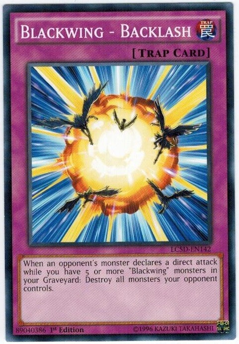 PICTURE IN LISTING IS ONLY FOR EXAMPLE ,it is a stock picture. Item condition is listed as "Used" because Ebay requires UPC codes for any item that is listed as "New", and trading cards do not have UPC Codes, so they must be listed as "Used". Card condition is listed in the listing title and in the item description. Rarity and edition of the card are described in the listing title and description. From this listing you will receive 3 card(s) for each purchase Description Set : Legendary Collection 5D's Name : Blackwing - Backlash Number : LC5D-EN142 Rarity : Common Condition : Near Mint Language : English We get your package in the mail quickly, please rate our service based on how quickly we gave your package to the post office. Not on how long it took the post office to deliver it. As we all know we cannot control that. If you have concerns about our shipping service, please send us a message and we will gladly talk to you about it and explain it. Domestic Buyers: Domestic orders within the United States are shipped for one flat rate, no cost for additional cards purchased on the same invoice. International Buyers: International orders are shipped First Class Mail International with and an additional item fee of $0.50. Orders over $50.00 USD require additional postage fees because of shipping method changes. SPECIAL REQUIREMENTS For International Orders Any International order greater than $100.00 USD will require shipment by : USPS Global Express Mail This is a flat rate service and you may ship cards totaling up to 16 ounces, the weight limit on the package. The following International Countries can request USPS First Class Mail International Package as the shipment method for orders over $50.00 USD as this service provides electronic tracking to these countries. This service is more expensive than the normal USPS First Class Mail International service, but cheaper than USPS Priority Mail International. Australia Gibraltar Netherlands Belgium Great Britain New Zealand Canada Hungary Northern Ireland Croatia Israel Portugal Denmark Latvia Singapore Estonia Lithuania Spain Finland Luxembourg Switzerland France Malaysia Germany Malta Special Handling of International orders : We reserve the right to hold and/or cancel any International order in which it appears the buyer is attempting to circumvent our Global Express shipping requirements by breaking up larger purchases into smaller orders. Orders made within a 30 day window and having previous orders that have not yet been acknowledged as received, via Feedback and Ebay messages will be subject to this condition and may be held until all previous orders have been acknowledged as received. International Buyers – Please Note: Import duties, taxes and charges are not included in the item price or shipping charges. These charges are the buyer's responsibility. Please check with your country's customs office to determine what these additional costs will be prior to bidding/buying. SHIPPING: Every attempt is made to send your item out within 1 business day of receipt of payment. Check our feedback! Pre-sell items are shipped within 1 business day of us getting merchandise in hand. Default Shipping Methods: Domestic Orders: Shipped First Class Mail Cards will be shipped with a Hard Sleeve and/or a Soft Sleeve for protection in accordance with eBay's standard envelope policy. International Orders: Shipped First Class Mail International Cards will be shipped with a Hard Sleeve and/or a Soft Sleeve for protection in accordance with eBay's standard envelope policy. We use all new and clean products to package your cards. If you have any questions, please do not hesitate to ask!