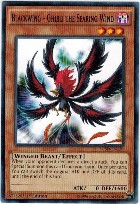 PICTURE IN LISTING IS ONLY FOR EXAMPLE ,it is a stock picture. Item condition is listed as "Used" because Ebay requires UPC codes for any item that is listed as "New", and trading cards do not have UPC Codes, so they must be listed as "Used". Card condition is listed in the listing title and in the item description. Rarity and edition of the card are described in the listing title and description. From this listing you will receive 3 card(s) for each purchase Description Set : Legendary Collection 5D's Name : Blackwing - Ghibli the Searing Wind Number : LC5D-EN120 Rarity : Common Condition : Near Mint Language : English We get your package in the mail quickly, please rate our service based on how quickly we gave your package to the post office. Not on how long it took the post office to deliver it. As we all know we cannot control that. If you have concerns about our shipping service, please send us a message and we will gladly talk to you about it and explain it. Domestic Buyers: Domestic orders within the United States are shipped for one flat rate, no cost for additional cards purchased on the same invoice. International Buyers: International orders are shipped First Class Mail International with and an additional item fee of $0.50. Orders over $50.00 USD require additional postage fees because of shipping method changes. SPECIAL REQUIREMENTS For International Orders Any International order greater than $100.00 USD will require shipment by : USPS Global Express Mail This is a flat rate service and you may ship cards totaling up to 16 ounces, the weight limit on the package. The following International Countries can request USPS First Class Mail International Package as the shipment method for orders over $50.00 USD as this service provides electronic tracking to these countries. This service is more expensive than the normal USPS First Class Mail International service, but cheaper than USPS Priority Mail International. Australia Gibraltar Netherlands Belgium Great Britain New Zealand Canada Hungary Northern Ireland Croatia Israel Portugal Denmark Latvia Singapore Estonia Lithuania Spain Finland Luxembourg Switzerland France Malaysia Germany Malta Special Handling of International orders : We reserve the right to hold and/or cancel any International order in which it appears the buyer is attempting to circumvent our Global Express shipping requirements by breaking up larger purchases into smaller orders. Orders made within a 30 day window and having previous orders that have not yet been acknowledged as received, via Feedback and Ebay messages will be subject to this condition and may be held until all previous orders have been acknowledged as received. International Buyers – Please Note: Import duties, taxes and charges are not included in the item price or shipping charges. These charges are the buyer's responsibility. Please check with your country's customs office to determine what these additional costs will be prior to bidding/buying. SHIPPING: Every attempt is made to send your item out within 1 business day of receipt of payment. Check our feedback! Pre-sell items are shipped within 1 business day of us getting merchandise in hand. Default Shipping Methods: Domestic Orders: Shipped First Class Mail Cards will be shipped with a Hard Sleeve and/or a Soft Sleeve for protection in accordance with eBay's standard envelope policy. International Orders: Shipped First Class Mail International Cards will be shipped with a Hard Sleeve and/or a Soft Sleeve for protection in accordance with eBay's standard envelope policy. We use all new and clean products to package your cards. If you have any questions, please do not hesitate to ask!