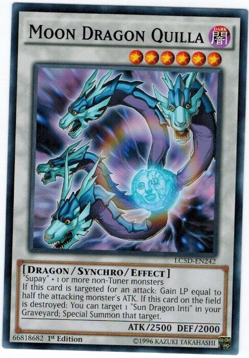 PICTURE IN LISTING IS ONLY FOR EXAMPLE ,it is a stock picture. Item condition is listed as "Used" because Ebay requires UPC codes for any item that is listed as "New", and trading cards do not have UPC Codes, so they must be listed as "Used". Card condition is listed in the listing title and in the item description. Rarity and edition of the card are described in the listing title and description. From this listing you will receive 3 card(s) for each purchase Description Set : Legendary Collection 5D's Name : Moon Dragon Quilla Number : LC5D-EN242 Rarity : Common Condition : Near Mint Language : English We get your package in the mail quickly, please rate our service based on how quickly we gave your package to the post office. Not on how long it took the post office to deliver it. As we all know we cannot control that. If you have concerns about our shipping service, please send us a message and we will gladly talk to you about it and explain it. Domestic Buyers: Domestic orders within the United States are shipped for one flat rate, no cost for additional cards purchased on the same invoice. International Buyers: International orders are shipped First Class Mail International with and an additional item fee of $0.50. Orders over $50.00 USD require additional postage fees because of shipping method changes. SPECIAL REQUIREMENTS For International Orders Any International order greater than $100.00 USD will require shipment by : USPS Global Express Mail This is a flat rate service and you may ship cards totaling up to 16 ounces, the weight limit on the package. The following International Countries can request USPS First Class Mail International Package as the shipment method for orders over $50.00 USD as this service provides electronic tracking to these countries. This service is more expensive than the normal USPS First Class Mail International service, but cheaper than USPS Priority Mail International. Australia Gibraltar Netherlands Belgium Great Britain New Zealand Canada Hungary Northern Ireland Croatia Israel Portugal Denmark Latvia Singapore Estonia Lithuania Spain Finland Luxembourg Switzerland France Malaysia Germany Malta Special Handling of International orders : We reserve the right to hold and/or cancel any International order in which it appears the buyer is attempting to circumvent our Global Express shipping requirements by breaking up larger purchases into smaller orders. Orders made within a 30 day window and having previous orders that have not yet been acknowledged as received, via Feedback and Ebay messages will be subject to this condition and may be held until all previous orders have been acknowledged as received. International Buyers – Please Note: Import duties, taxes and charges are not included in the item price or shipping charges. These charges are the buyer's responsibility. Please check with your country's customs office to determine what these additional costs will be prior to bidding/buying. SHIPPING: Every attempt is made to send your item out within 1 business day of receipt of payment. Check our feedback! Pre-sell items are shipped within 1 business day of us getting merchandise in hand. Default Shipping Methods: Domestic Orders: Shipped First Class Mail Cards will be shipped with a Hard Sleeve and/or a Soft Sleeve for protection in accordance with eBay's standard envelope policy. International Orders: Shipped First Class Mail International Cards will be shipped with a Hard Sleeve and/or a Soft Sleeve for protection in accordance with eBay's standard envelope policy. We use all new and clean products to package your cards. If you have any questions, please do not hesitate to ask!