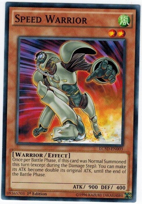 PICTURE IN LISTING IS ONLY FOR EXAMPLE ,it is a stock picture. Item condition is listed as "Used" because Ebay requires UPC codes for any item that is listed as "New", and trading cards do not have UPC Codes, so they must be listed as "Used". Card condition is listed in the listing title and in the item description. Rarity and edition of the card are described in the listing title and description. From this listing you will receive 3 card(s) for each purchase Description Set : Legendary Collection 5D's Name : Speed Warrior Number : LC5D-EN003 Rarity : Common Condition : Near Mint Language : English We get your package in the mail quickly, please rate our service based on how quickly we gave your package to the post office. Not on how long it took the post office to deliver it. As we all know we cannot control that. If you have concerns about our shipping service, please send us a message and we will gladly talk to you about it and explain it. Domestic Buyers: Domestic orders within the United States are shipped for one flat rate, no cost for additional cards purchased on the same invoice. International Buyers: International orders are shipped First Class Mail International with and an additional item fee of $0.50. Orders over $50.00 USD require additional postage fees because of shipping method changes. SPECIAL REQUIREMENTS For International Orders Any International order greater than $100.00 USD will require shipment by : USPS Global Express Mail This is a flat rate service and you may ship cards totaling up to 16 ounces, the weight limit on the package. The following International Countries can request USPS First Class Mail International Package as the shipment method for orders over $50.00 USD as this service provides electronic tracking to these countries. This service is more expensive than the normal USPS First Class Mail International service, but cheaper than USPS Priority Mail International. Australia Gibraltar Netherlands Belgium Great Britain New Zealand Canada Hungary Northern Ireland Croatia Israel Portugal Denmark Latvia Singapore Estonia Lithuania Spain Finland Luxembourg Switzerland France Malaysia Germany Malta Special Handling of International orders : We reserve the right to hold and/or cancel any International order in which it appears the buyer is attempting to circumvent our Global Express shipping requirements by breaking up larger purchases into smaller orders. Orders made within a 30 day window and having previous orders that have not yet been acknowledged as received, via Feedback and Ebay messages will be subject to this condition and may be held until all previous orders have been acknowledged as received. International Buyers – Please Note: Import duties, taxes and charges are not included in the item price or shipping charges. These charges are the buyer's responsibility. Please check with your country's customs office to determine what these additional costs will be prior to bidding/buying. SHIPPING: Every attempt is made to send your item out within 1 business day of receipt of payment. Check our feedback! Pre-sell items are shipped within 1 business day of us getting merchandise in hand. Default Shipping Methods: Domestic Orders: Shipped First Class Mail Cards will be shipped with a Hard Sleeve and/or a Soft Sleeve for protection in accordance with eBay's standard envelope policy. International Orders: Shipped First Class Mail International Cards will be shipped with a Hard Sleeve and/or a Soft Sleeve for protection in accordance with eBay's standard envelope policy. We use all new and clean products to package your cards. If you have any questions, please do not hesitate to ask!