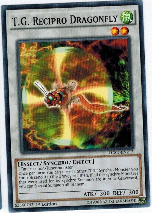 PICTURE IN LISTING IS ONLY FOR EXAMPLE ,it is a stock picture. Item condition is listed as "Used" because Ebay requires UPC codes for any item that is listed as "New", and trading cards do not have UPC Codes, so they must be listed as "Used". Card condition is listed in the listing title and in the item description. Rarity and edition of the card are described in the listing title and description. From this listing you will receive 3 card(s) for each purchase Description Set : Legendary Collection 5D's Name : T.G. Recipro Dragonfly Number : LC5D-EN212 Rarity : Common Condition : Near Mint Language : English We get your package in the mail quickly, please rate our service based on how quickly we gave your package to the post office. Not on how long it took the post office to deliver it. As we all know we cannot control that. If you have concerns about our shipping service, please send us a message and we will gladly talk to you about it and explain it. Domestic Buyers: Domestic orders within the United States are shipped for one flat rate, no cost for additional cards purchased on the same invoice. International Buyers: International orders are shipped First Class Mail International with and an additional item fee of $0.50. Orders over $50.00 USD require additional postage fees because of shipping method changes. SPECIAL REQUIREMENTS For International Orders Any International order greater than $100.00 USD will require shipment by : USPS Global Express Mail This is a flat rate service and you may ship cards totaling up to 16 ounces, the weight limit on the package. The following International Countries can request USPS First Class Mail International Package as the shipment method for orders over $50.00 USD as this service provides electronic tracking to these countries. This service is more expensive than the normal USPS First Class Mail International service, but cheaper than USPS Priority Mail International. Australia Gibraltar Netherlands Belgium Great Britain New Zealand Canada Hungary Northern Ireland Croatia Israel Portugal Denmark Latvia Singapore Estonia Lithuania Spain Finland Luxembourg Switzerland France Malaysia Germany Malta Special Handling of International orders : We reserve the right to hold and/or cancel any International order in which it appears the buyer is attempting to circumvent our Global Express shipping requirements by breaking up larger purchases into smaller orders. Orders made within a 30 day window and having previous orders that have not yet been acknowledged as received, via Feedback and Ebay messages will be subject to this condition and may be held until all previous orders have been acknowledged as received. International Buyers – Please Note: Import duties, taxes and charges are not included in the item price or shipping charges. These charges are the buyer's responsibility. Please check with your country's customs office to determine what these additional costs will be prior to bidding/buying. SHIPPING: Every attempt is made to send your item out within 1 business day of receipt of payment. Check our feedback! Pre-sell items are shipped within 1 business day of us getting merchandise in hand. Default Shipping Methods: Domestic Orders: Shipped First Class Mail Cards will be shipped with a Hard Sleeve and/or a Soft Sleeve for protection in accordance with eBay's standard envelope policy. International Orders: Shipped First Class Mail International Cards will be shipped with a Hard Sleeve and/or a Soft Sleeve for protection in accordance with eBay's standard envelope policy. We use all new and clean products to package your cards. If you have any questions, please do not hesitate to ask!