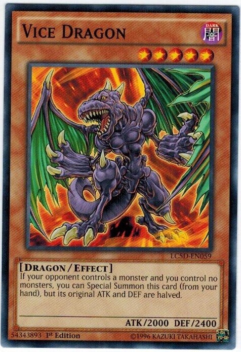 PICTURE IN LISTING IS ONLY FOR EXAMPLE ,it is a stock picture. Item condition is listed as "Used" because Ebay requires UPC codes for any item that is listed as "New", and trading cards do not have UPC Codes, so they must be listed as "Used". Card condition is listed in the listing title and in the item description. Rarity and edition of the card are described in the listing title and description. From this listing you will receive 3 card(s) for each purchase Description Set : Legendary Collection 5D's Name : Vice Dragon Number : LC5D-EN059 Rarity : Common Condition : Near Mint Language : English We get your package in the mail quickly, please rate our service based on how quickly we gave your package to the post office. Not on how long it took the post office to deliver it. As we all know we cannot control that. If you have concerns about our shipping service, please send us a message and we will gladly talk to you about it and explain it. Domestic Buyers: Domestic orders within the United States are shipped for one flat rate, no cost for additional cards purchased on the same invoice. International Buyers: International orders are shipped First Class Mail International with and an additional item fee of $0.50. Orders over $50.00 USD require additional postage fees because of shipping method changes. SPECIAL REQUIREMENTS For International Orders Any International order greater than $100.00 USD will require shipment by : USPS Global Express Mail This is a flat rate service and you may ship cards totaling up to 16 ounces, the weight limit on the package. The following International Countries can request USPS First Class Mail International Package as the shipment method for orders over $50.00 USD as this service provides electronic tracking to these countries. This service is more expensive than the normal USPS First Class Mail International service, but cheaper than USPS Priority Mail International. Australia Gibraltar Netherlands Belgium Great Britain New Zealand Canada Hungary Northern Ireland Croatia Israel Portugal Denmark Latvia Singapore Estonia Lithuania Spain Finland Luxembourg Switzerland France Malaysia Germany Malta Special Handling of International orders : We reserve the right to hold and/or cancel any International order in which it appears the buyer is attempting to circumvent our Global Express shipping requirements by breaking up larger purchases into smaller orders. Orders made within a 30 day window and having previous orders that have not yet been acknowledged as received, via Feedback and Ebay messages will be subject to this condition and may be held until all previous orders have been acknowledged as received. International Buyers – Please Note: Import duties, taxes and charges are not included in the item price or shipping charges. These charges are the buyer's responsibility. Please check with your country's customs office to determine what these additional costs will be prior to bidding/buying. SHIPPING: Every attempt is made to send your item out within 1 business day of receipt of payment. Check our feedback! Pre-sell items are shipped within 1 business day of us getting merchandise in hand. Default Shipping Methods: Domestic Orders: Shipped First Class Mail Cards will be shipped with a Hard Sleeve and/or a Soft Sleeve for protection in accordance with eBay's standard envelope policy. International Orders: Shipped First Class Mail International Cards will be shipped with a Hard Sleeve and/or a Soft Sleeve for protection in accordance with eBay's standard envelope policy. We use all new and clean products to package your cards. If you have any questions, please do not hesitate to ask!