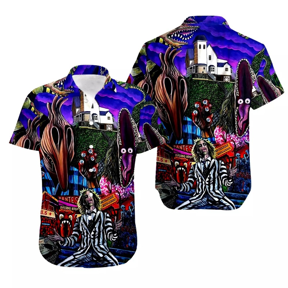 3D Horror Beetlejuice Tropical Hawaiian Shirt for Halloween - Sizes S to 5XL