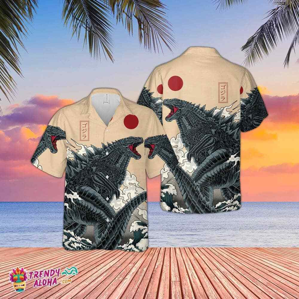 Vintage Godzilla Gojira 3D Monster Hawaiian Beach Shirt