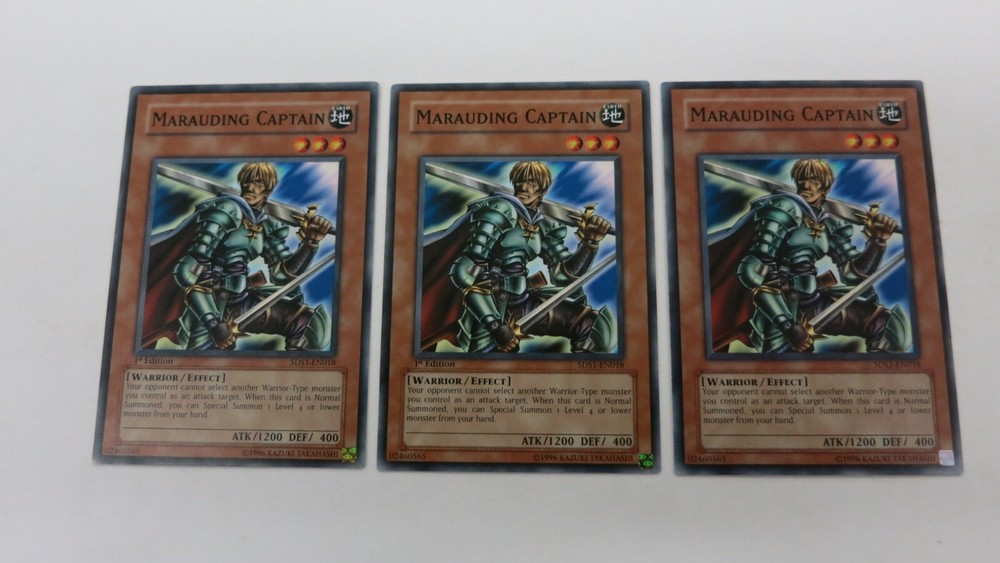 Welcome to Great_Deals_On_Collectibles.We are in the retail hobby sector and have been since 1991.We sell sportscards,gaming cards,comic books,action figures,plush toys and various other hobby related items.We have been on Ebay since 1999.We try to make buyers experience on EBAY as satisfying as possible.Our feedback on Ebay speaks volumes.Every item we have up for auction is LIVE and ready to be shipped upon payment. If you have any questions feel free to contact us,thanks for showing interest. YUGIOH You are bidding on 3x ( 2x 1st / 1x UNL ) MARAUDING CAPTAIN MONSTER 5DS1-EN018 COMMON YUGIOH NM