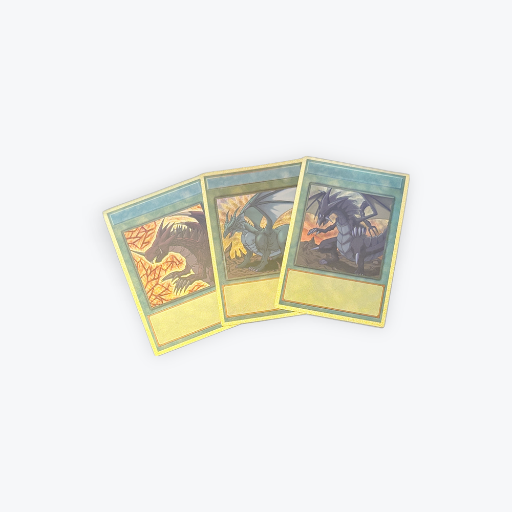 Envoy's Realm Send us a message Created with Eselt - Mobile Templates for eBay Sellers Created with Eselt - Mobile Templates for eBay Sellers 3x Legendary Dragons | Orichalcos | Gold Foil | Promo | DIY Holo | Yugioh Now is your chance to get your hand on these Exclusive Collectible Beautiful Custom Yugioh Cards The card included is a custom variant of : 1 Custom Legendary Gold Foil T he Fang Of Critias 1 Custom Legendary Gold Foil The Claw Of Hermos 1 Custom Legendary Gold Foil The Eye of Timaeus These particular custom cards are printed beautifully on these gold foil cards with no description. Yugi Muto , Joey Wheeler and Seto Kaiba each receive 1 of the 3 Legendary Dragon cards: " The Eye of Timaeus ", " The Claw of Hermos " and " The Fang of Critias ", respectively. According to Kaiba, the Dragon he received, "Critias", seemed just as powerful as the Egyptian God Cards . Custom High Quality Trading Cards Package Includes: 3 Beautiful Gold Collector Cards Great for gifts and collectors Exclusive Beautiful Art For Reference: Orica Cards are custom Cards ( Ori ginal Ca rds). These Custom Yugioh Cards are not Legal in the Yugioh CCG OR TCG and usually are custom printed or made with alternate versions of custom art. This may include unique descriptions or modifiers for usually aesthetic purposes Created with Eselt - Mobile Templates for eBay Sellers