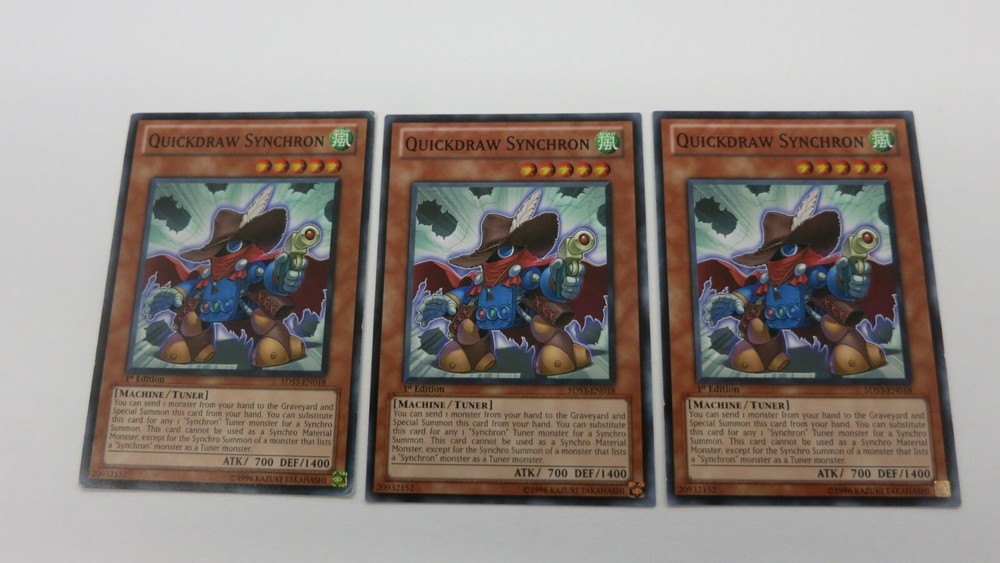 Welcome to Great_Deals_On_Collectibles.We are in the retail hobby sector and have been since 1991.We sell sportscards,gaming cards,comic books,action figures,plush toys and various other hobby related items.We have been on Ebay since 1999.We try to make buyers experience on EBAY as satisfying as possible.Our feedback on Ebay speaks volumes.Every item we have up for auction is LIVE and ready to be shipped upon payment. If you have any questions feel free to contact us,thanks for showing interest. YUGIOH You are bidding on 3x QUICKDRAW SYNCHRON MONSTER 5DS3-EN018 1ST EDITION COMMON YUGIOH NM