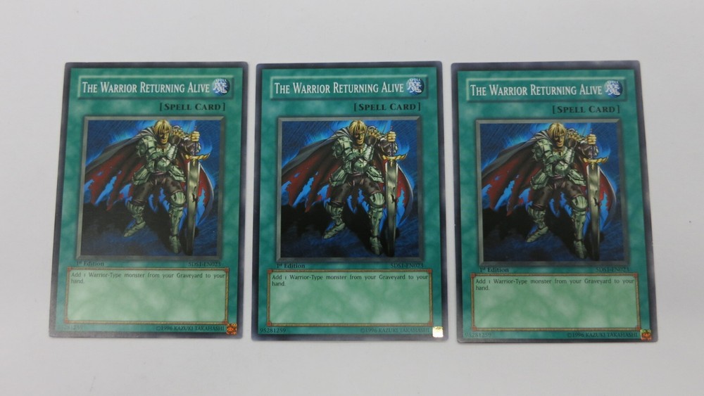 Welcome to Great_Deals_On_Collectibles.We are in the retail hobby sector and have been since 1991.We sell sportscards,gaming cards,comic books,action figures,plush toys and various other hobby related items.We have been on Ebay since 1999.We try to make buyers experience on EBAY as satisfying as possible.Our feedback on Ebay speaks volumes.Every item we have up for auction is LIVE and ready to be shipped upon payment. If you have any questions feel free to contact us,thanks for showing interest. YUGIOH You are bidding on 3x THE WARRIOR RETURNING ALIVE 5DS1-EN023 SPELL 1ST EDITION COMMON YUGIOH NM