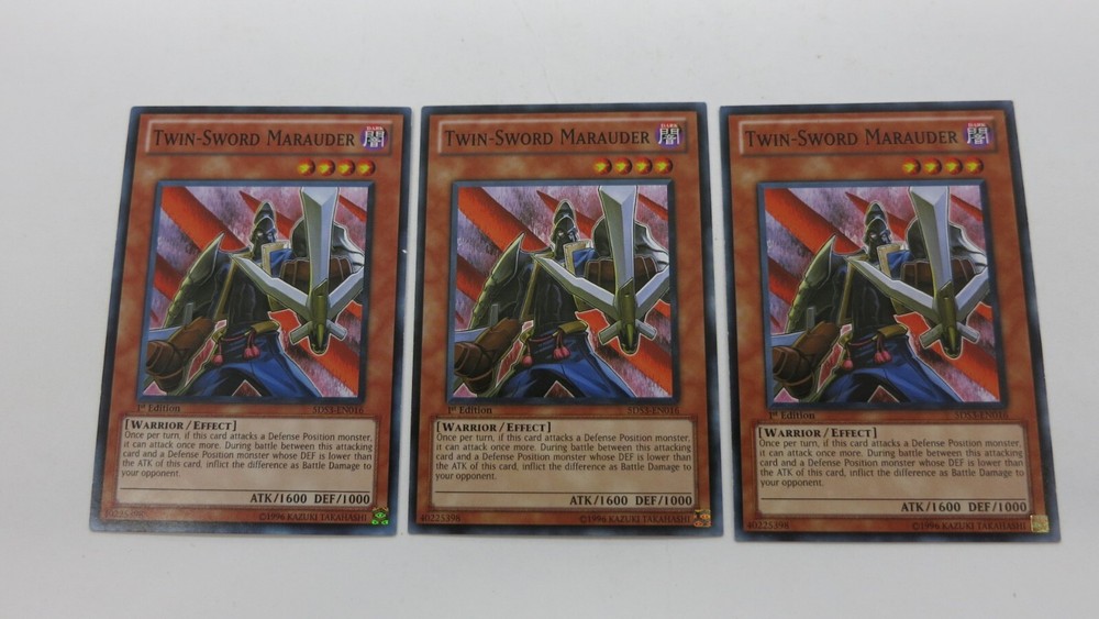 Welcome to Great_Deals_On_Collectibles.We are in the retail hobby sector and have been since 1991.We sell sportscards,gaming cards,comic books,action figures,plush toys and various other hobby related items.We have been on Ebay since 1999.We try to make buyers experience on EBAY as satisfying as possible.Our feedback on Ebay speaks volumes.Every item we have up for auction is LIVE and ready to be shipped upon payment. If you have any questions feel free to contact us,thanks for showing interest. YUGIOH You are bidding on 3x TWIN SWORD MARAUDER 5DS3-EN016 1ST EDITION COMMON YUGIOH NM