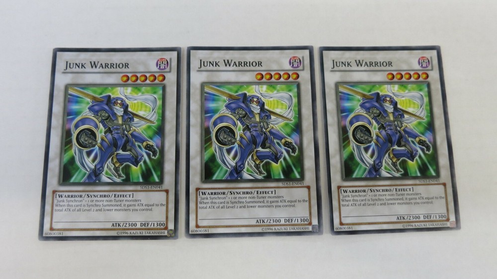 Welcome to Great_Deals_On_Collectibles.We are in the retail hobby sector and have been since 1991.We sell sportscards,gaming cards,comic books,action figures,plush toys and various other hobby related items.We have been on Ebay since 1999.We try to make buyers experience on EBAY as satisfying as possible.Our feedback on Ebay speaks volumes.Every item we have up for auction is LIVE and ready to be shipped upon payment. If you have any questions feel free to contact us,thanks for showing interest. YUGIOH You are bidding on 3x UNLIMITED JUNK WARRIOR 5DS1-EN041 PLAYSET COMMON YUGIOH UNPLAYED
